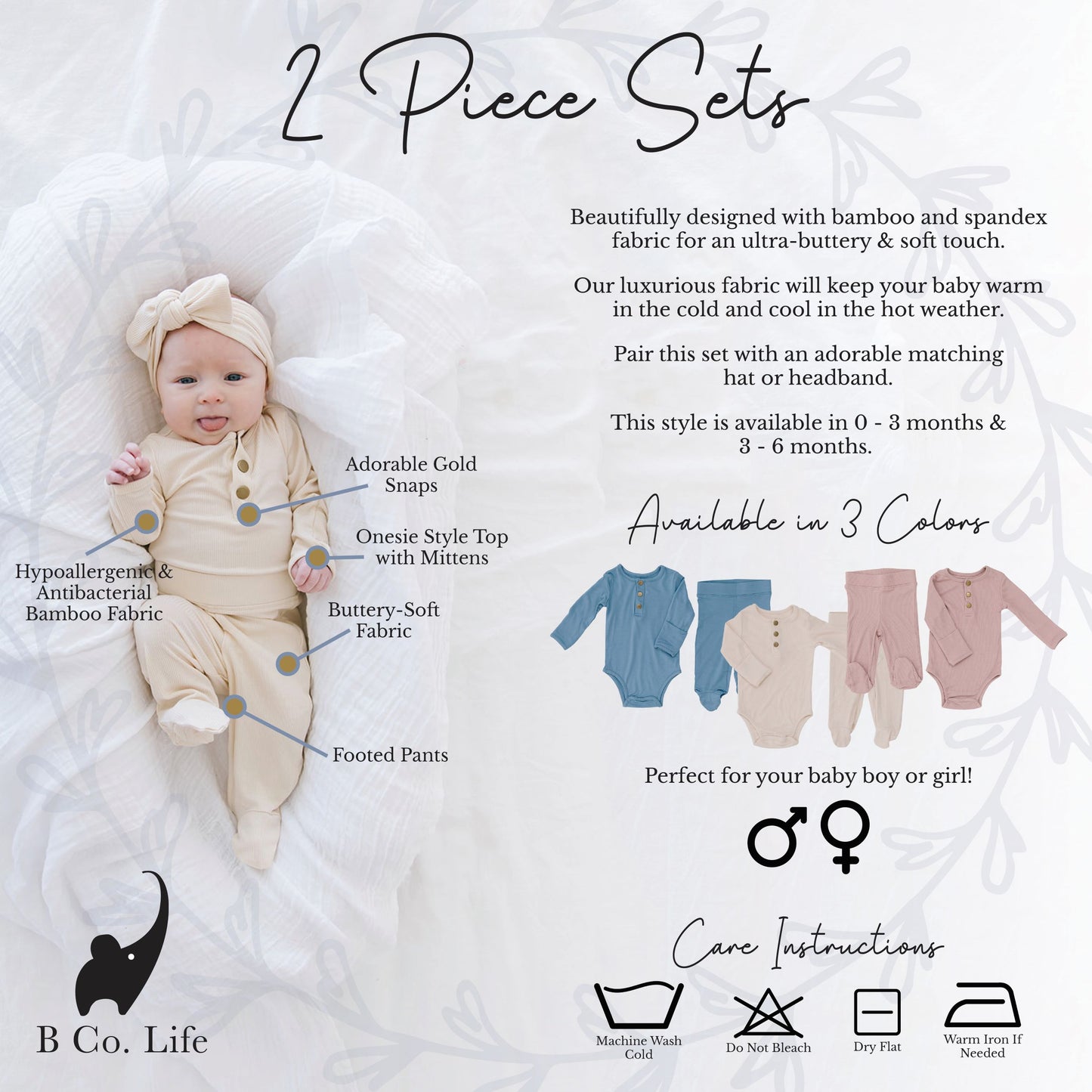 Practical and Stylish: For sizes 0-3 and 3-6 months, enjoy a bodysuit and footed pants. For sizes 6 months and up, the set includes a long sleeve top and fitted bottoms, providing style and practicality for every stage.