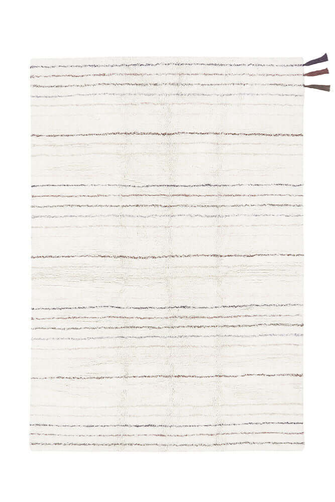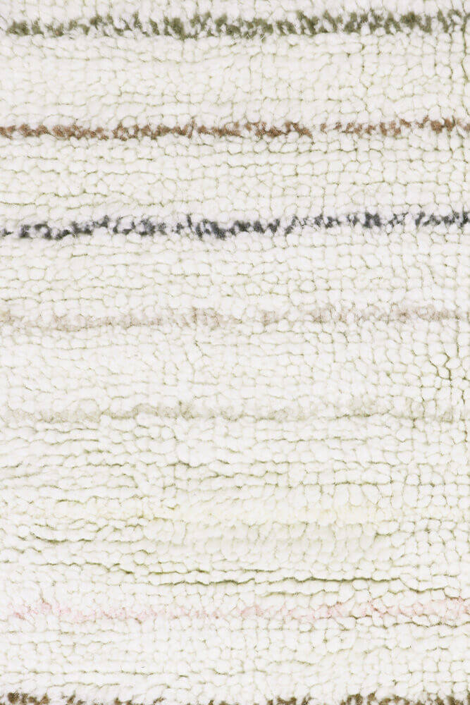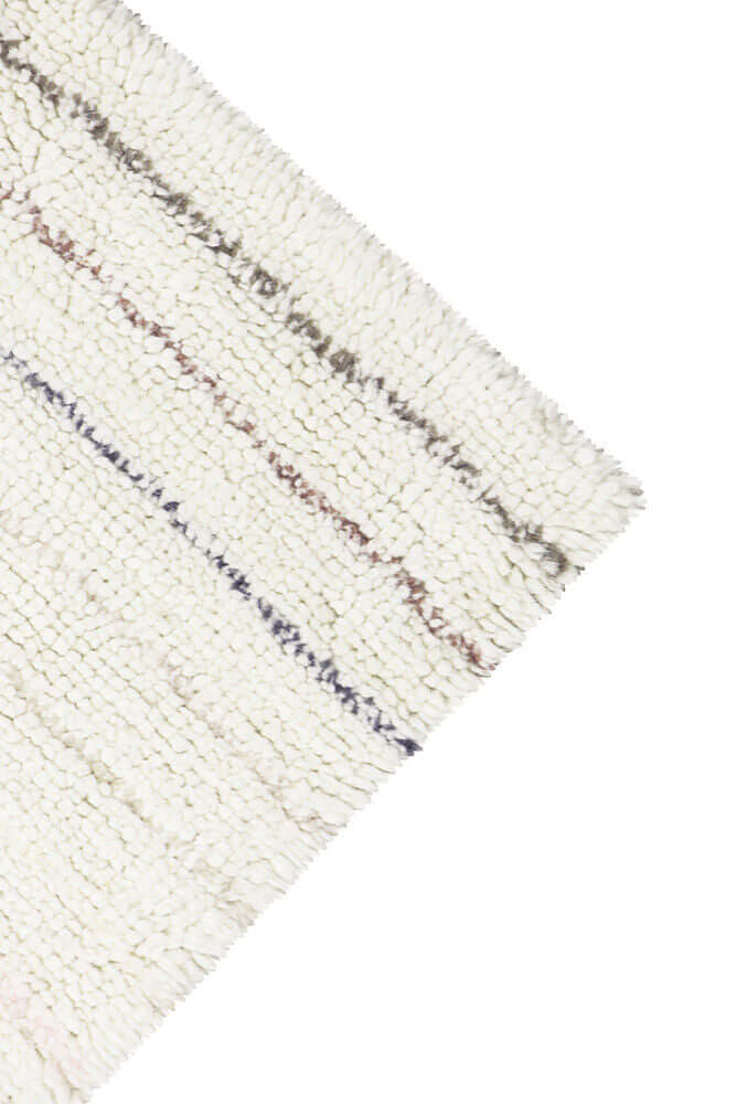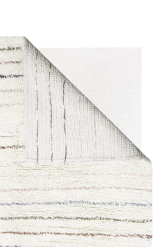 Eleven shades of wool! This rug is versatile in shape and color, and practical as it is washable in spite of being woolen. Its neutral base and dusty hues blend in any decor. Rectangular-shaped, it features a basic stripe design for a modern, understated look, suited for elegant kids' or teens' rooms, or even a grown-ups' room! Each washable wool rug comes packed in a cotton tote bag that can be used for storage and includes a complimentary anti-slip underlay to fit under the rug and keep it in place.