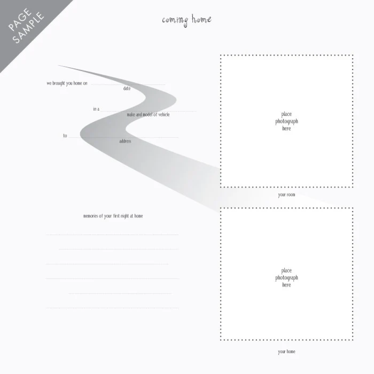 - 24 bright white, heavy-weight printed pages with prompts from birth to first birthday and room for photos. The Memories page includes a vellum envelope to capture clippings from baby's first haircut or other sweet mementos.