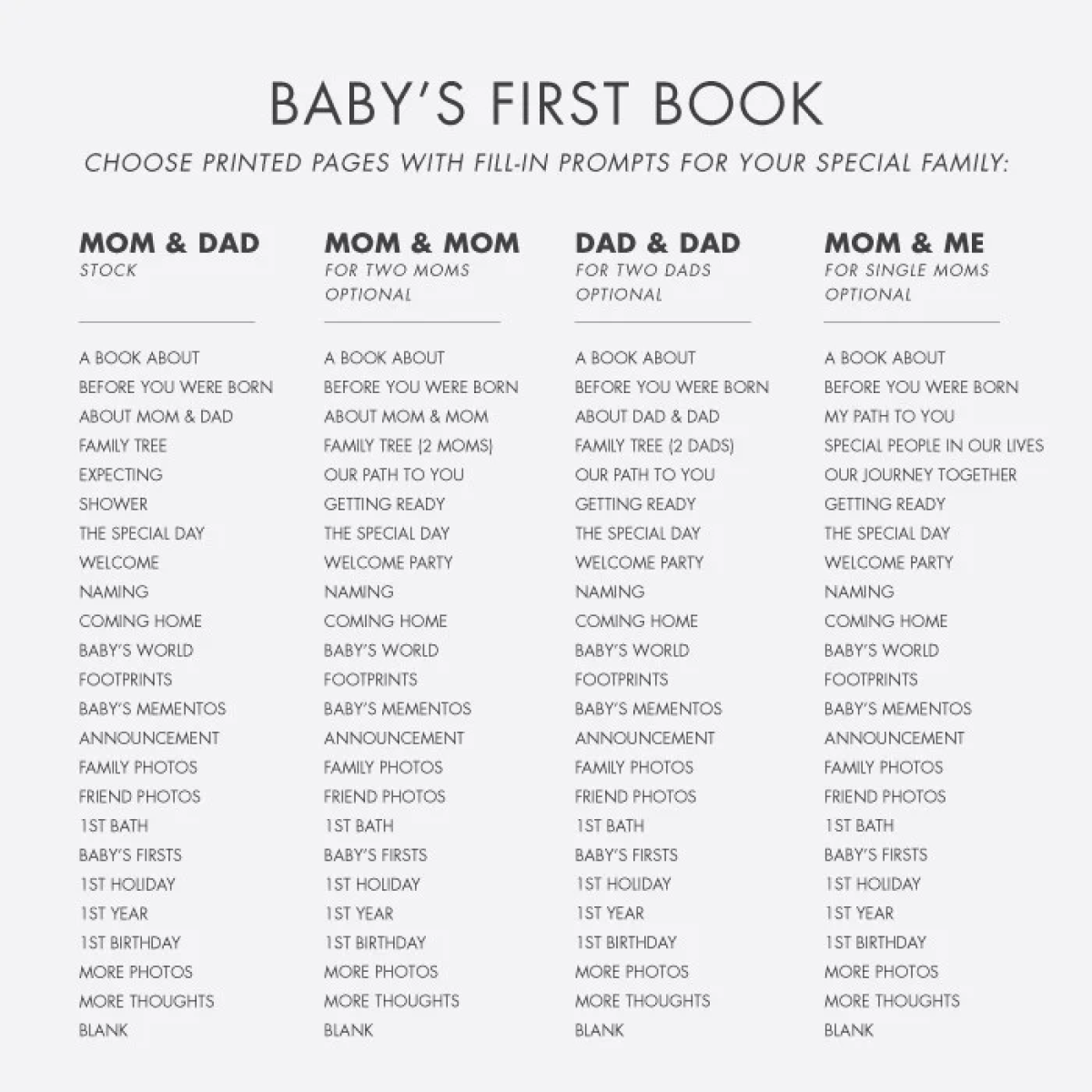 - MOM & MOM / DAD & DADpages include prompts for same-sex parents and include pages such as The Story Of Our Path To You, Getting Ready and How We Prepared For Your Arrival.