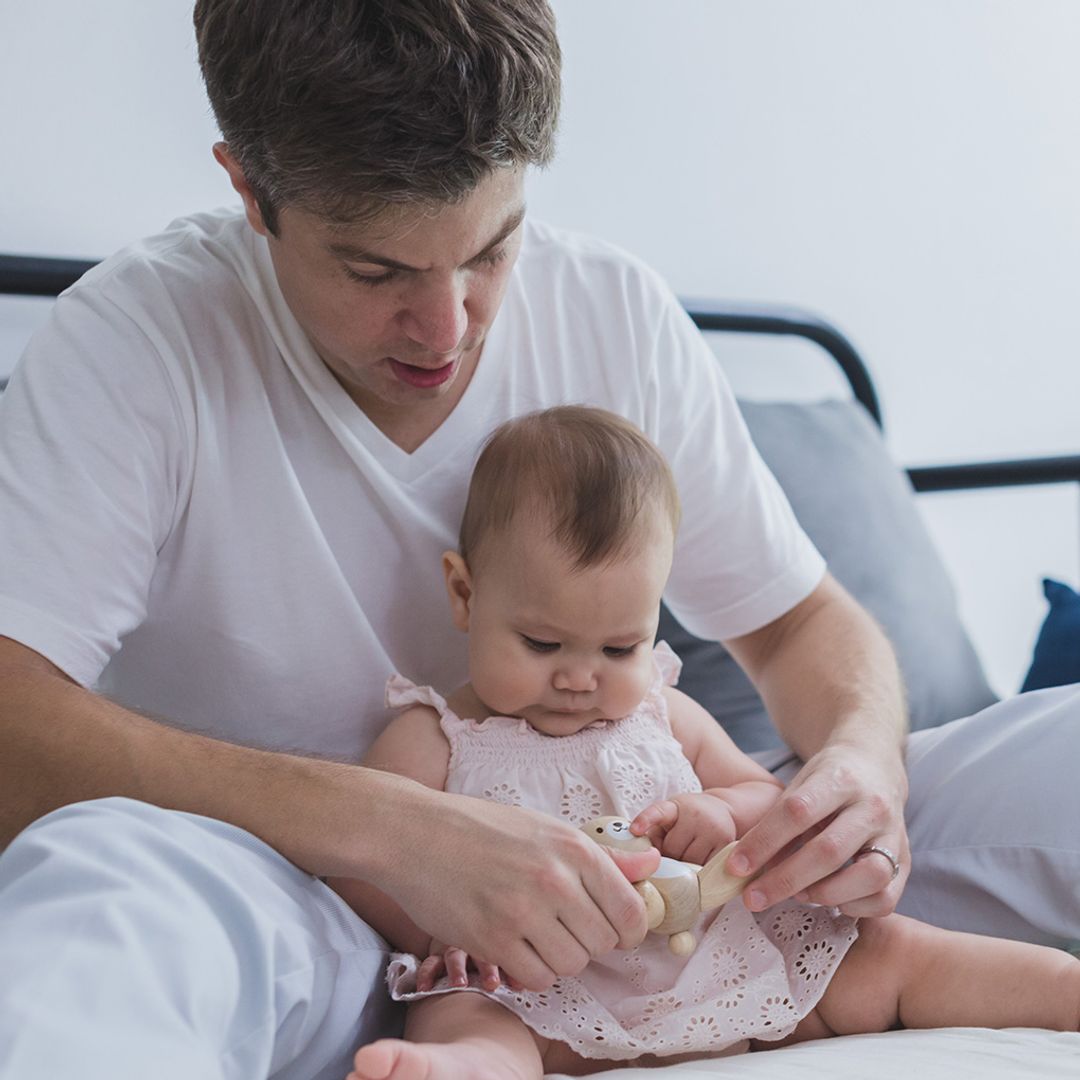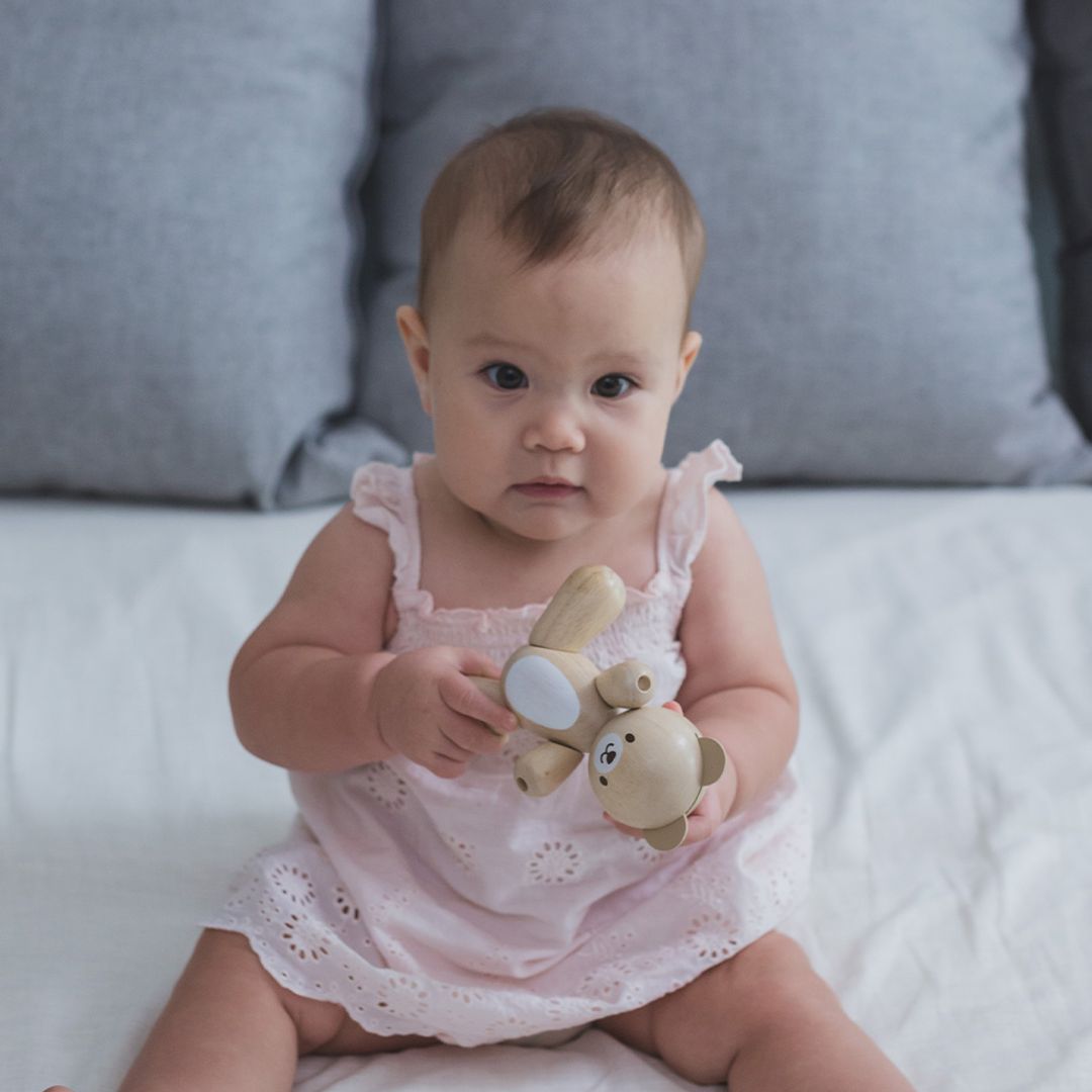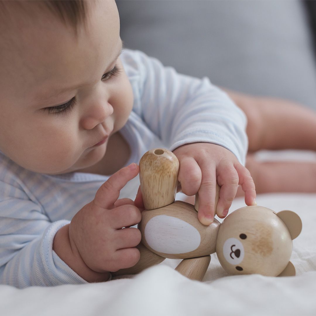 - The friendly PlanToys Bear is a great toy for children to learn to grasp and hold.