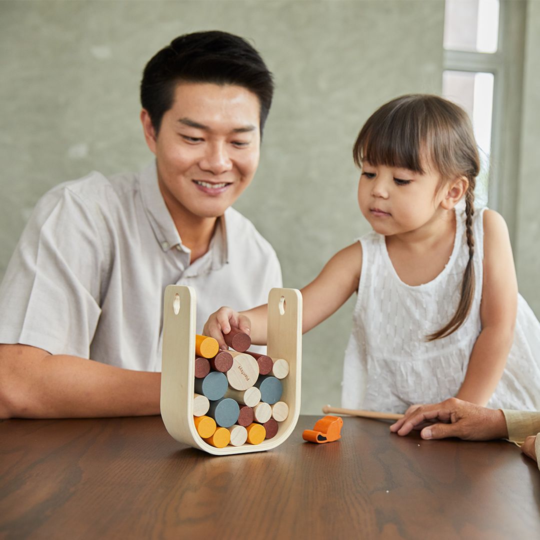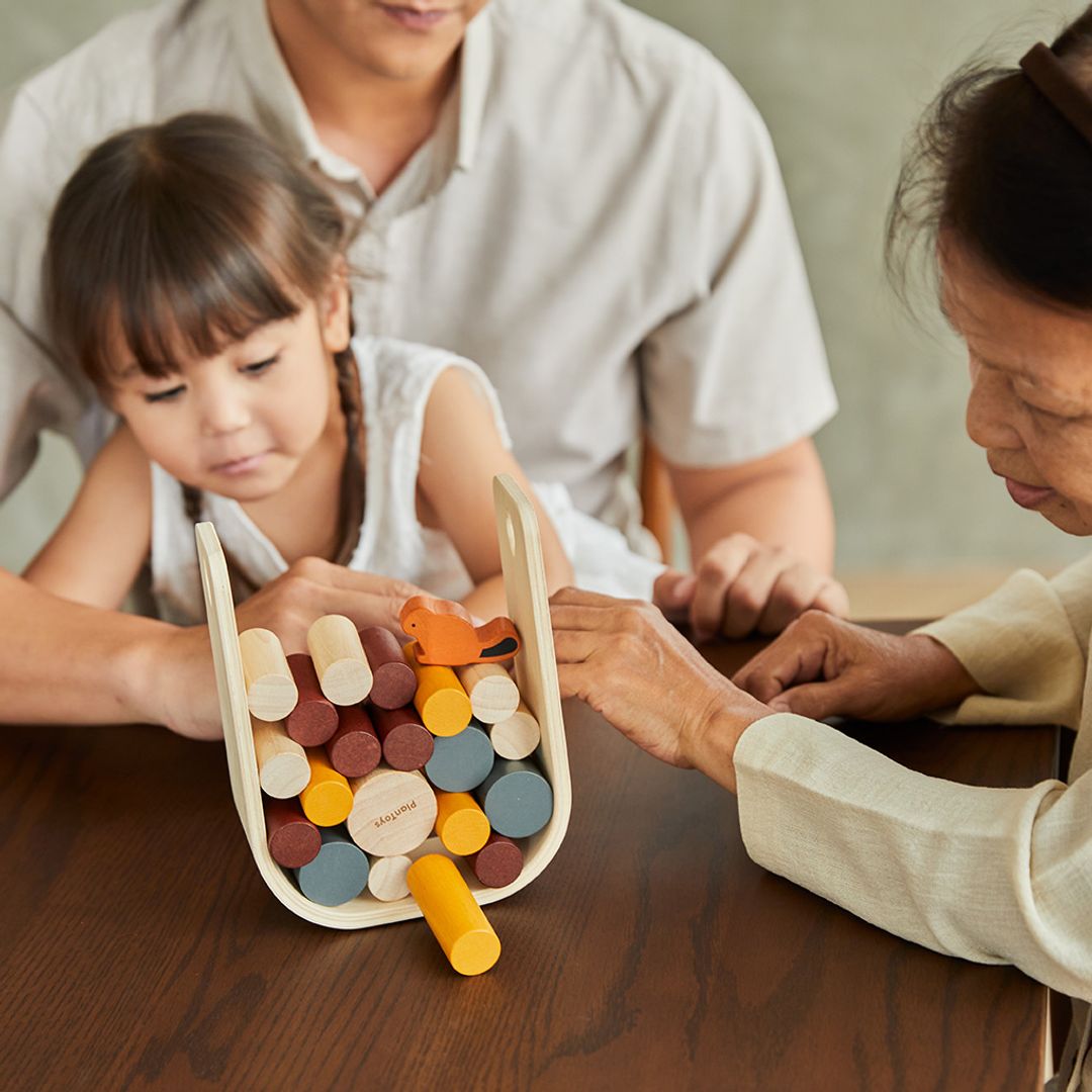 Sharpen strategic thinking skills and hand-eye coordination with the PlanToys Beaver Tumble! Using the included wooden stick, each player takes a turn pushing out a log while preventing the beaver from taking a tumble. The players who are successful in removing timber from the beaver nest without having the beaver tumble win the game! Beaver Tumble can be played individually or in groups.