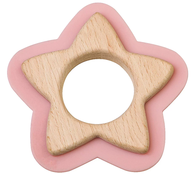 Beech Wood and Silicone Star Teether, Pink