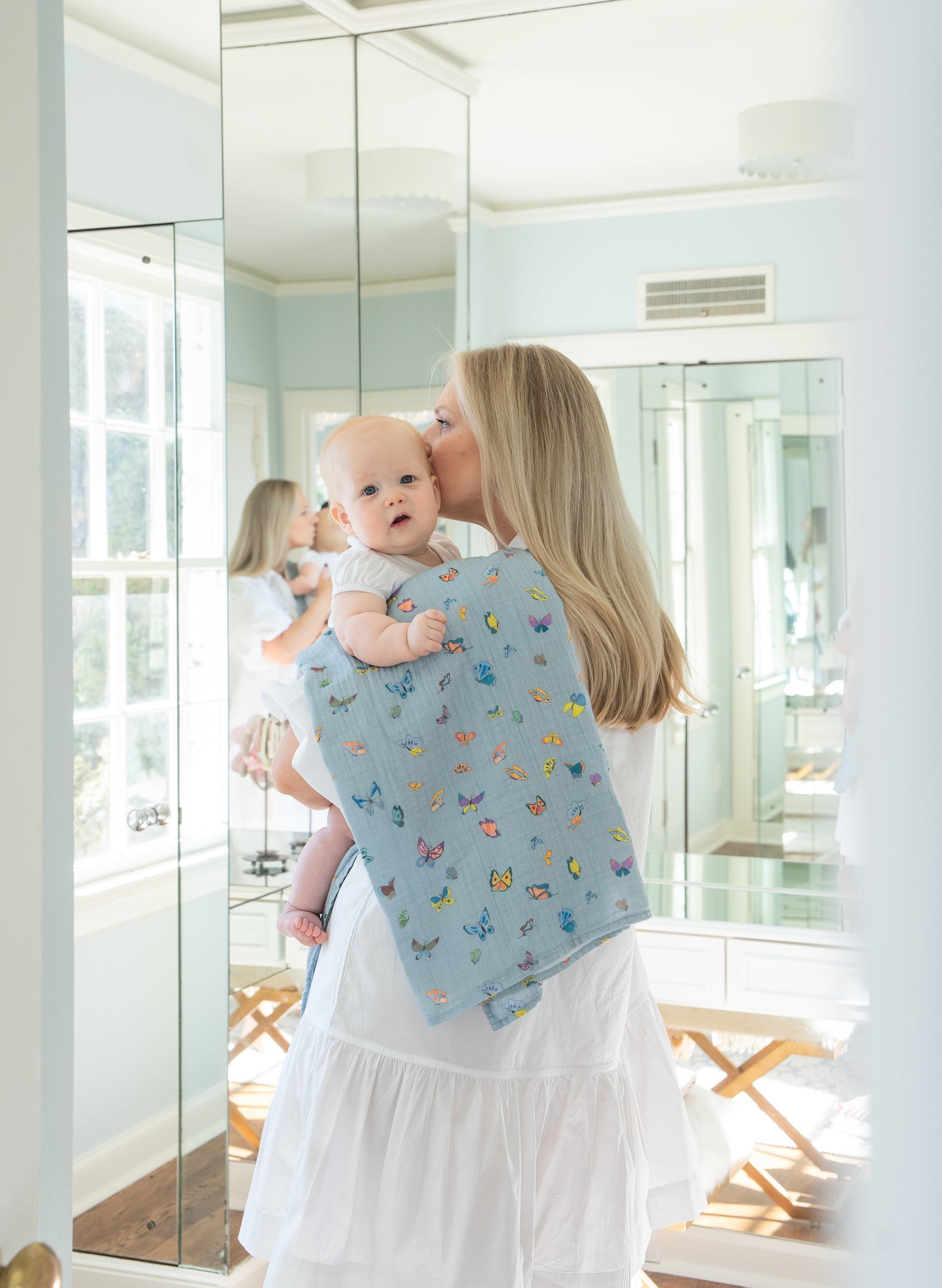 This is it: that versatile item that can do just about everything. From swaddling your precious newborn to being casually thrown around your neck as a scarf, our Shawl Blanket will become your everyday, never-leave-home-without-it accessory that will keep you and baby warm and cozy. (And don’t worry, we won’t tell your little one that you keep raiding her closet!) Deliciously soft 100% organic cotton.