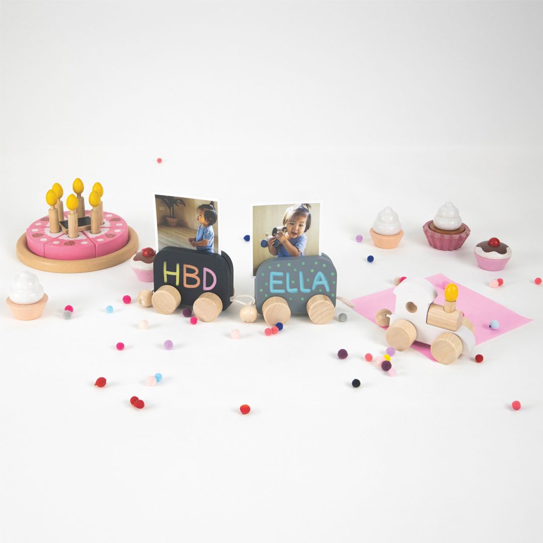 Make your child's special day extra fun with a train that features a space for their picture and a chalkboard surface for writing their name! This Celebration Train comes with 1 locomotive and 2 bogies. Incorporate it into their special day and watch as your child's face lights up when they see it personalized!