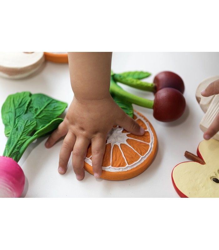 CLEMENTINO THE ORANGE is a fruit-shaped baby toy perfect for teething, sensory play, and bath time - all the while introducing them to a healthy lifestyle at an early age! Safe for kids, worry-free play!