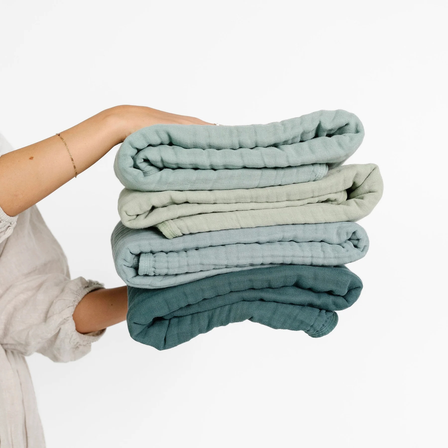Cloud Muslin™ is made from 9 dreamy layers of our custom milled, 100% cotton fabric. Perfectly fluffy, it makes for a buttery soft landing for sweet baby cheeks.