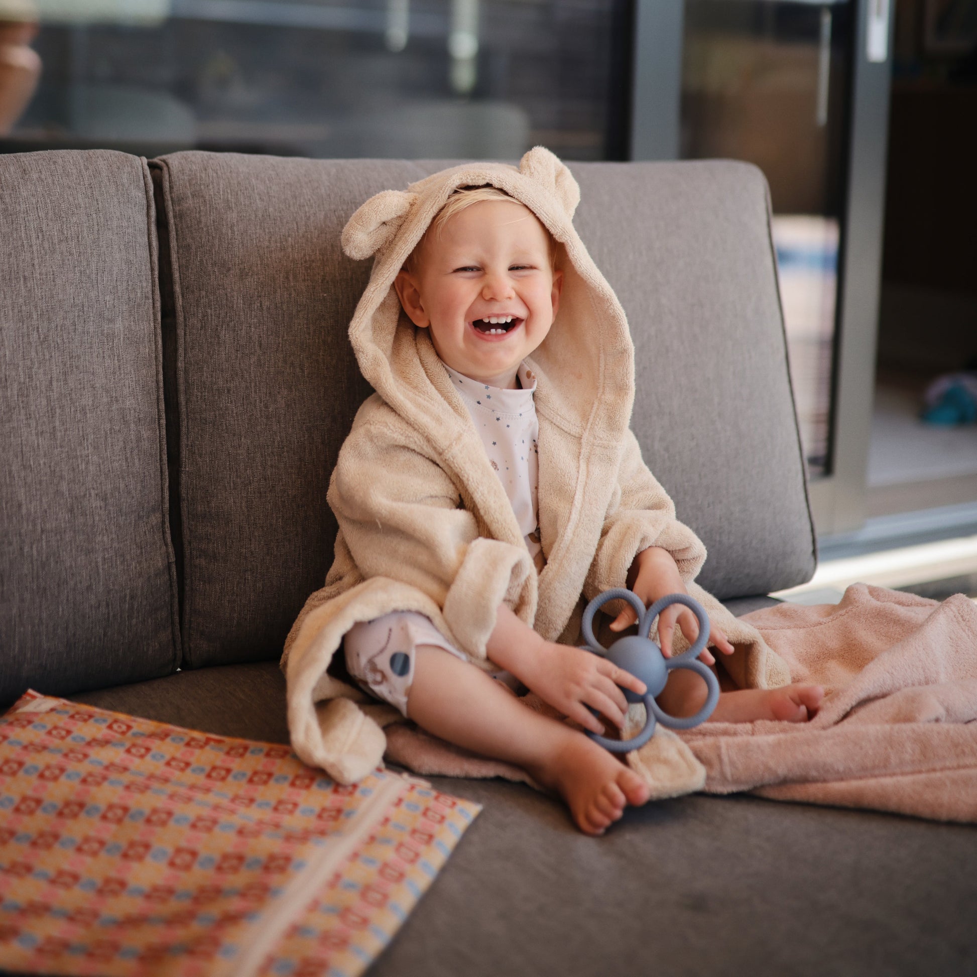 Inspired by nature and designed with functionality and comfort in mind, our silicone Daisy Rattle Teether features a playful flower shape and built-in rattle. The cheerful sound engages baby’s auditory senses for added soothing relief. With handles that are easy for small hands to grasp and a textured silicone surface that massages gums, our rattle teethers are perfect for your little one’s teething journey. Made from 100% non-toxic, BPA free, food-grade silicone.