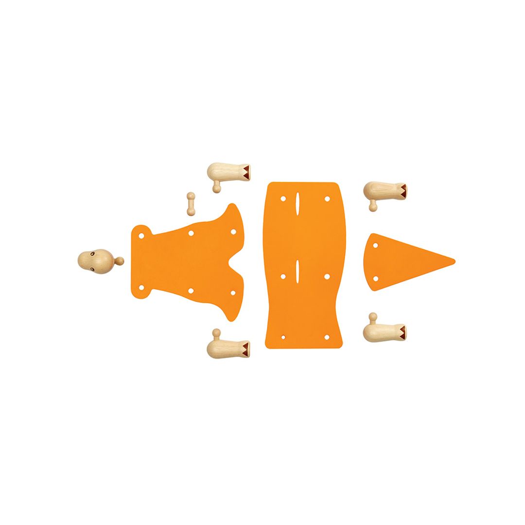 The Brachiosaurus, also known as a sauropod, can transform into a three-dimensional form by combining a variety of different parts, both rubber and wood. Take the transformation even further by adding materials of your choice with a dash of imagination. An infographic flashcard is included to combine learning with play.