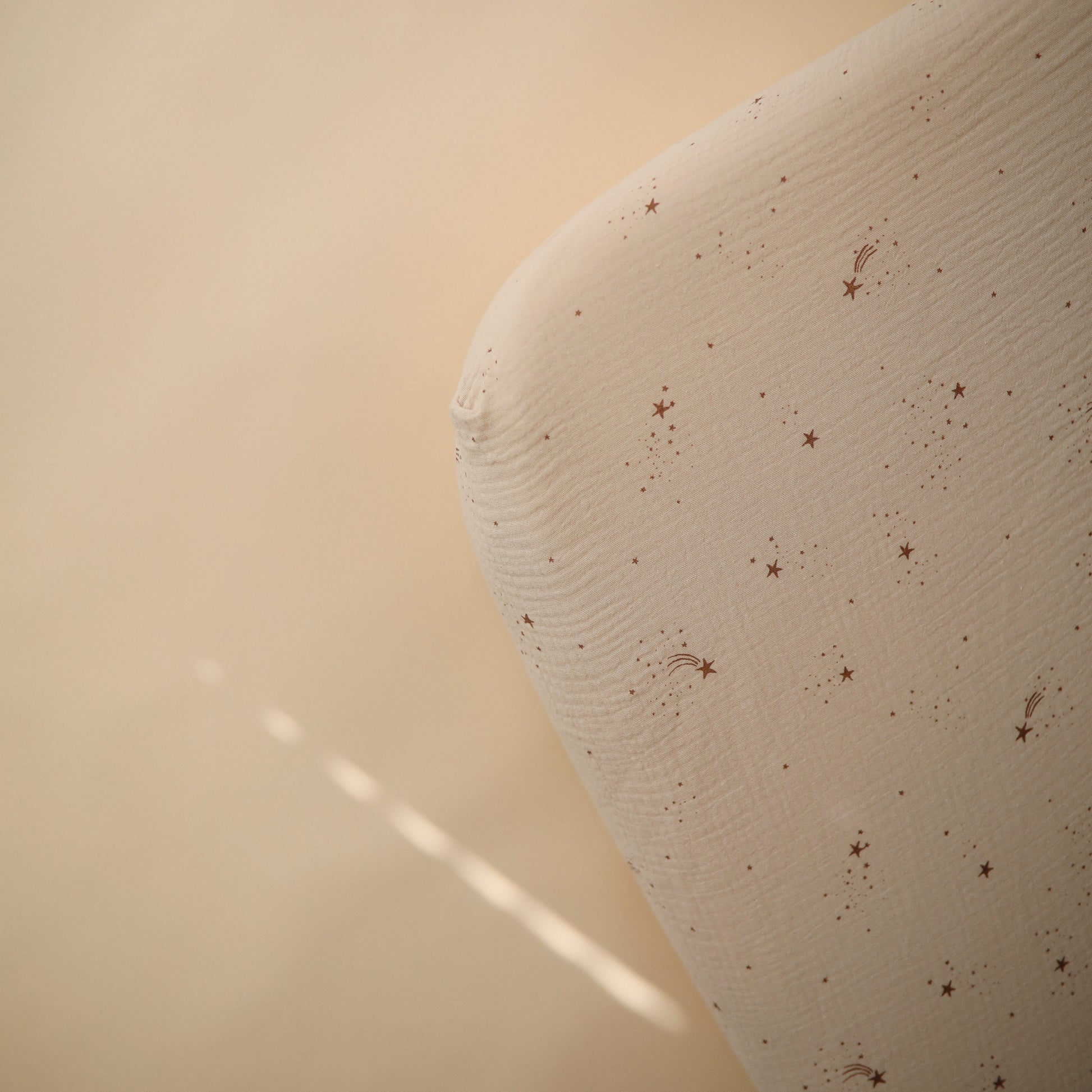 Made from 100% cotton, our cozy, extra soft muslin crib sheets are pre-washed for softness against baby's delicate skin. Muslin cotton stays breathable while keeping your little one comfy and cuddly. Thoughtfully designed in soothing colors and patterns with fully elastic edges and deep pockets for a perfect fit wash after wash.