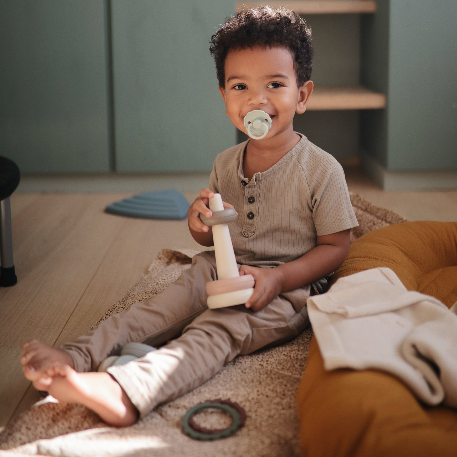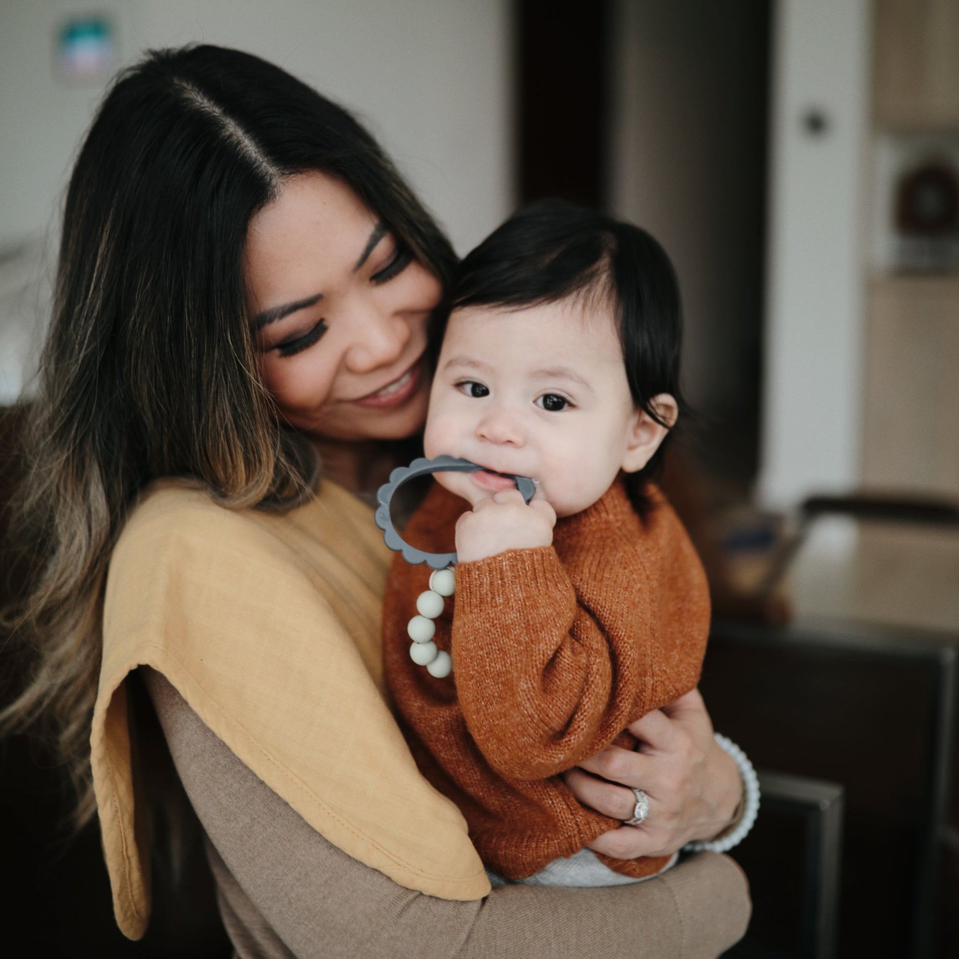 Help soothe your baby's irritated gums with our line of teethers. Made from 100% non-toxic, food-grade silicone, and designed to be easy to grasp by tiny fingers, our teethers are safe for your baby to use. Their sophisticated colors and playful design make them a stylish addition to your home.