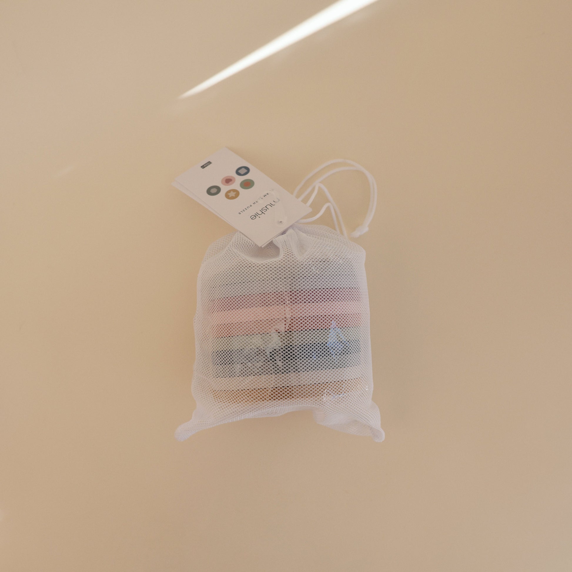 - 1x set of 10 foam bath puzzle pieces and mesh bag