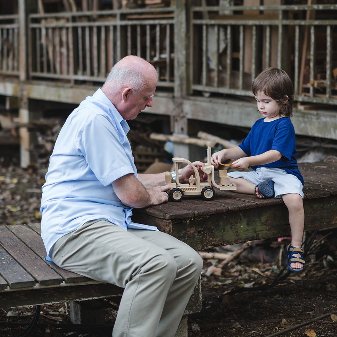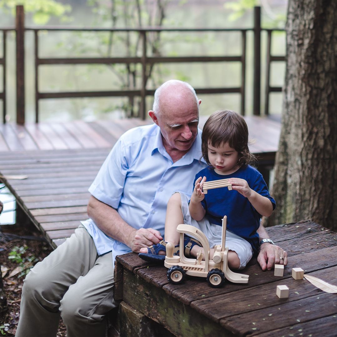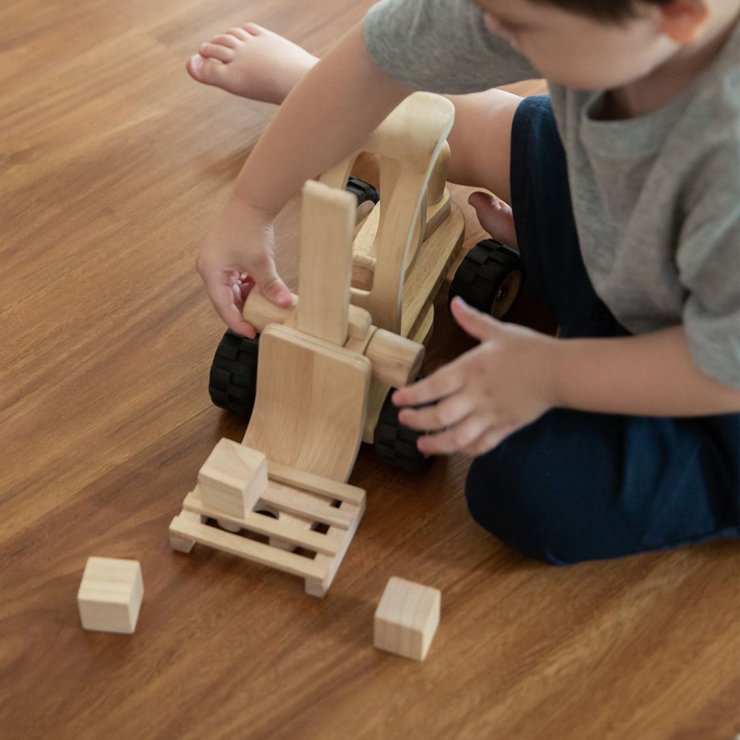 - The PlanToys Forklift is packed with features and functions. The back knob helps direct and guide the forklift from left to right.
