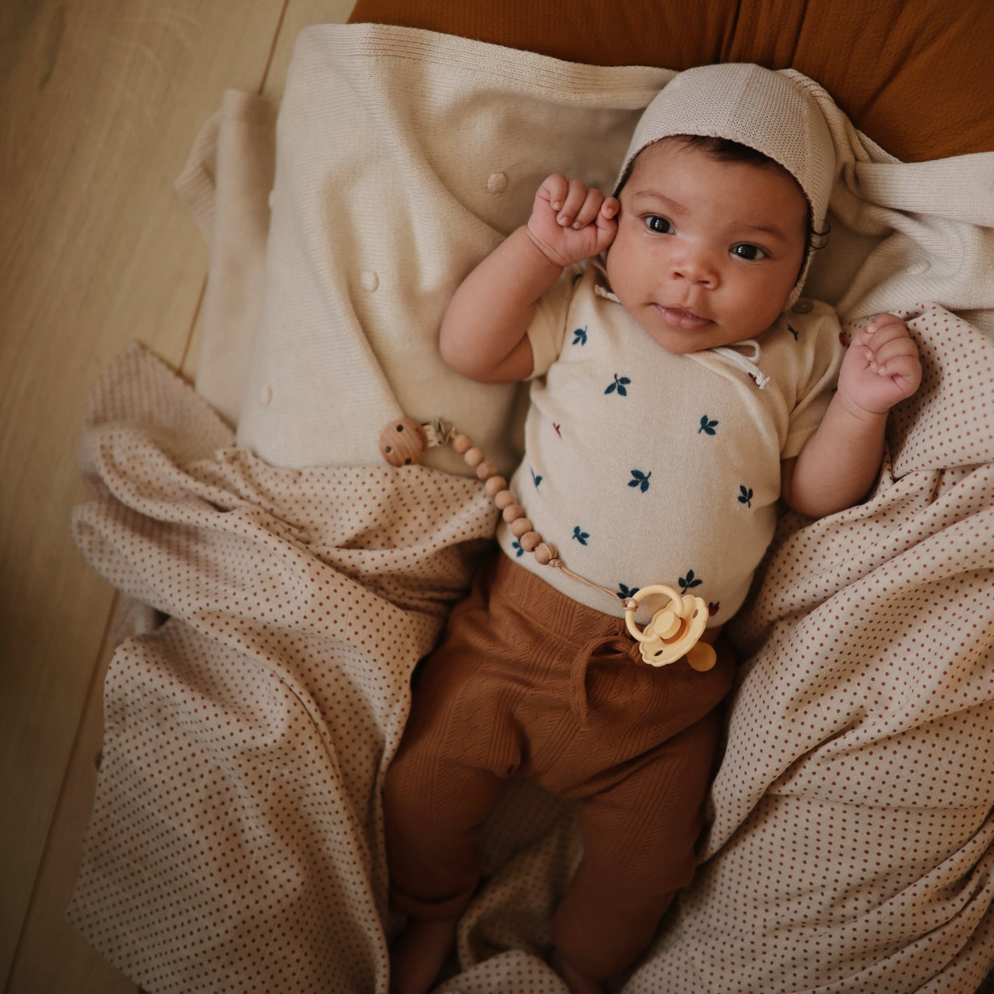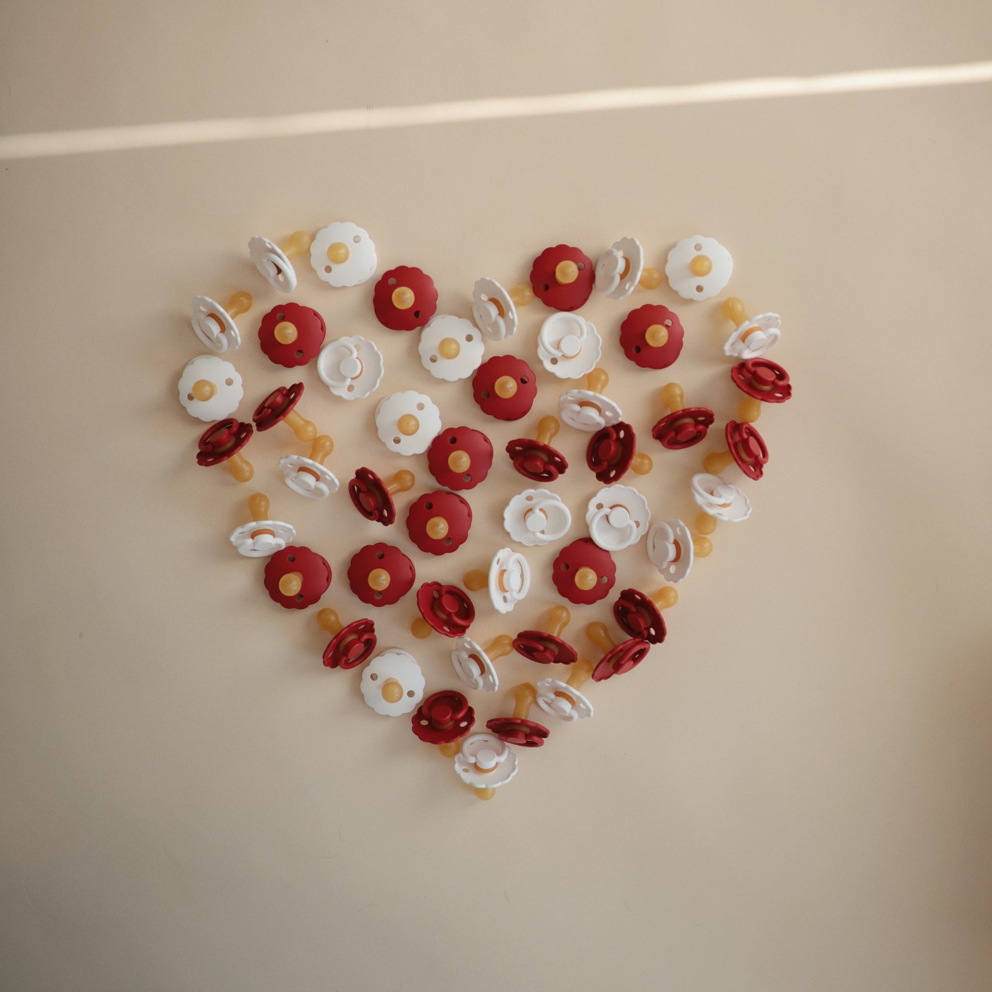 The FRIGG line of daisy natural latex pacifiers has been thoughtfully designed for your baby's comfort. The outward curve keeps the pacifier off their delicate skin, while features like air holes and a security handle ensure your baby stays safe. Available in a range of soft colors, FRIGG pacifiers make a beautiful addition to your collection of baby essentials.