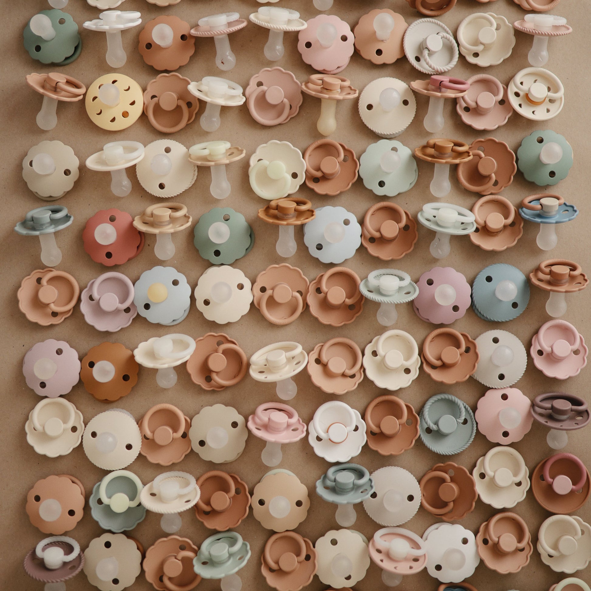 - What's included: 1 set of 2 FRIGG Daisy Night silicone pacifiers