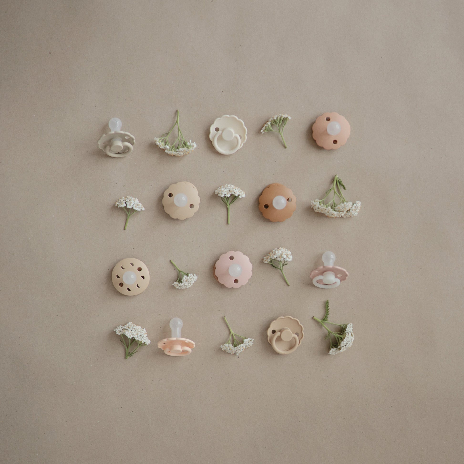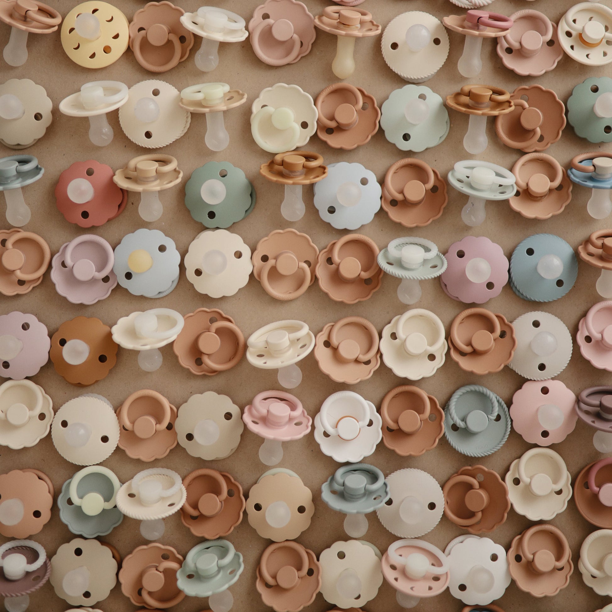 - What's included: 1 set of 2 FRIGG Daisy silicone pacifiers