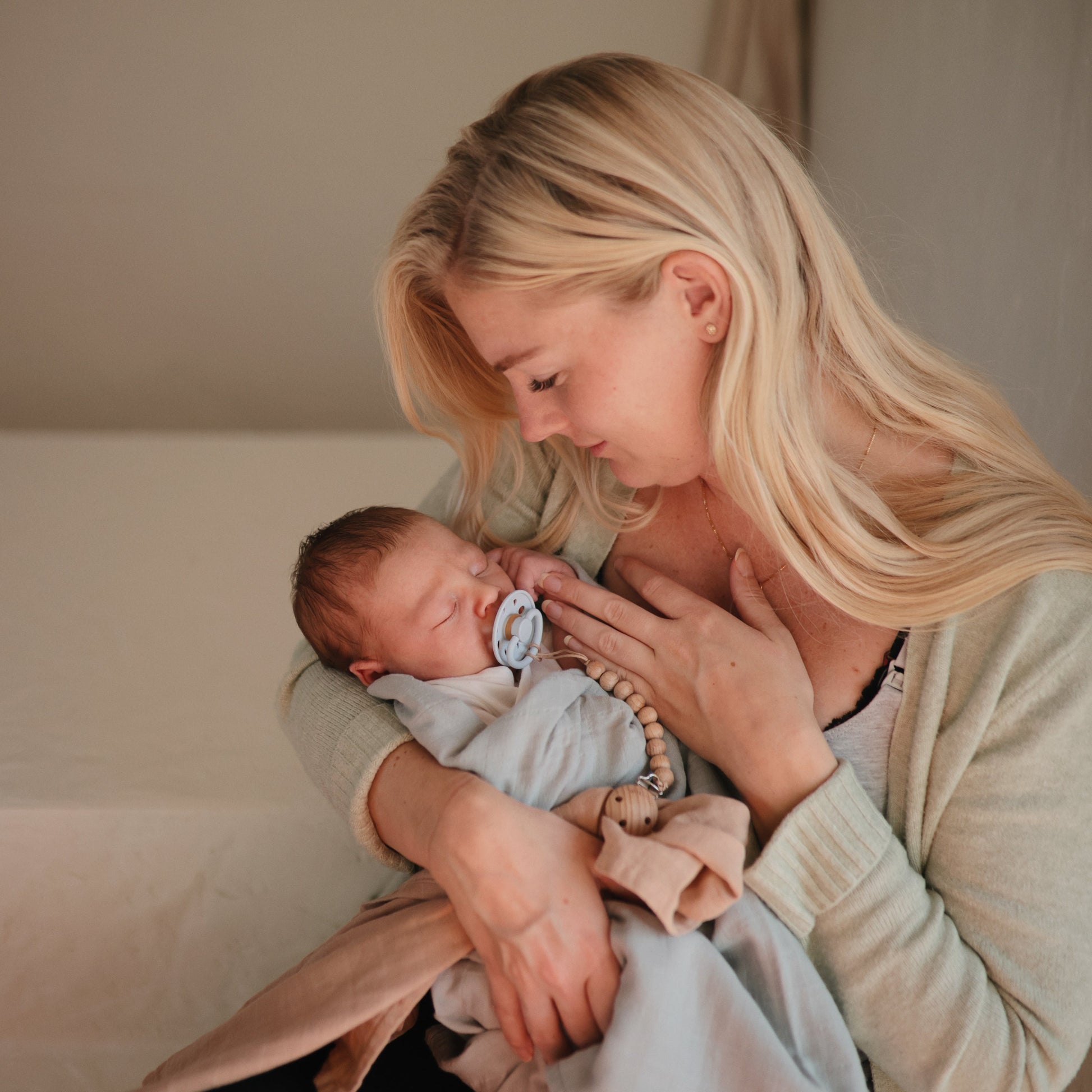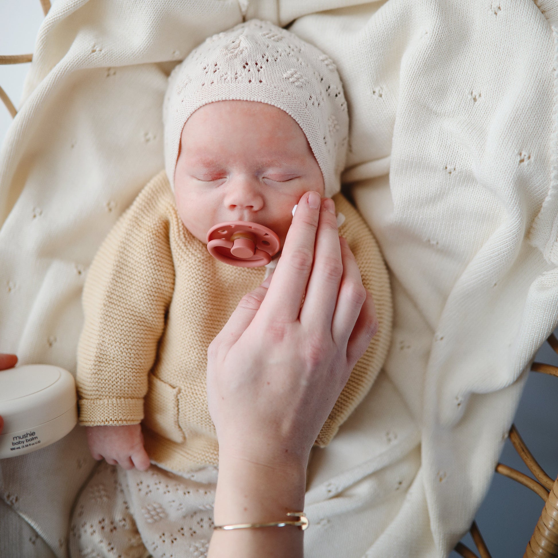 The FRIGG line of moon phase rubber pacifiers is thoughtfully designed for your baby's comfort and inspired by the moon in motion. The outward curve keeps the pacifier off delicate skin, while air holes and a security handle ensure your baby stays safe. Within the pacifier shield, air holes reveal the eight phases of the moon in subtle detail. Available in a range of soft colors, FRIGG pacifiers make a beautiful addition to your collection of baby essentials.