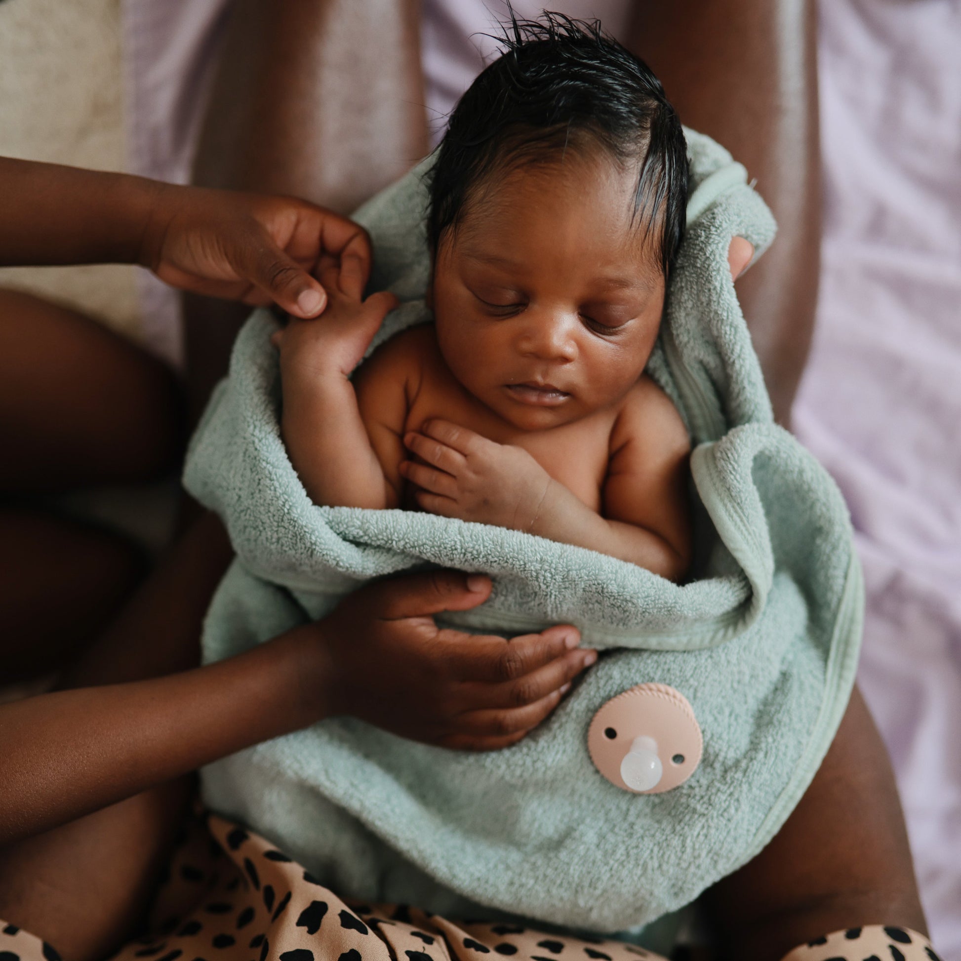 The FRIGG line of rope silicone pacifiers with improved SilkySoft™ nipple and an innovative Click-lock System has been thoughtfully designed for your baby's comfort and features an entwined rope that surrounds the pacifier shield. The outward curve keeps the pacifier off their delicate skin, while features like air holes and a security handle ensure your baby stays safe. Available in a range of soft colors, FRIGG pacifiers make a beautiful addition to your collection of baby essentials.