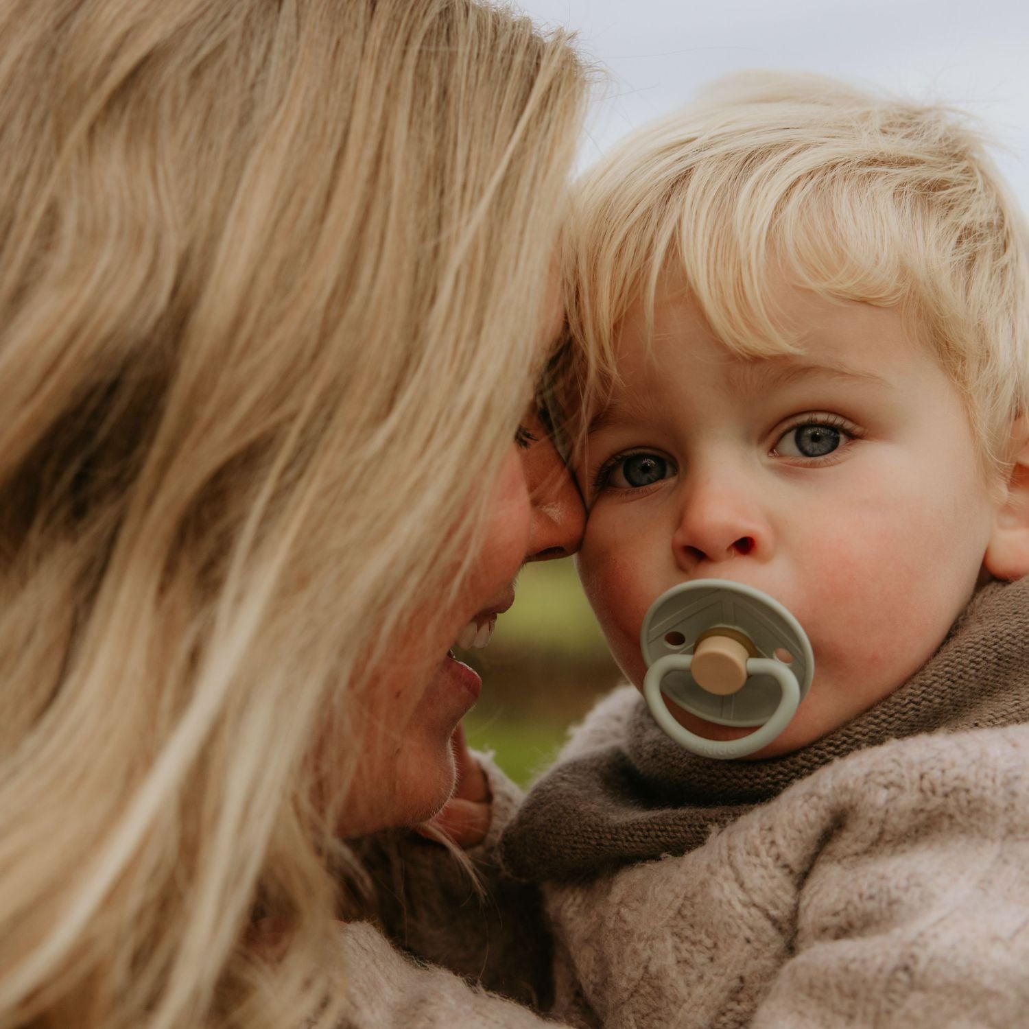 The FRIGG line of silicone pacifiers have been thoughtfully designed for your baby's comfort. The outward curve keeps the pacifier off their delicate skin, while features like air holes and a security handle ensure your baby stays safe. Available in a range of soft colors, FRIGG pacifiers make a beautiful addition to your collection of baby essentials.
