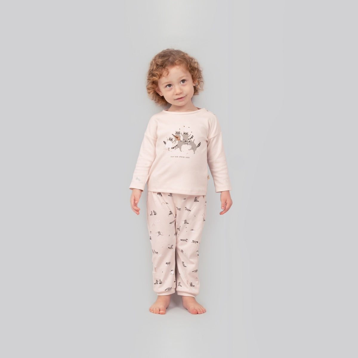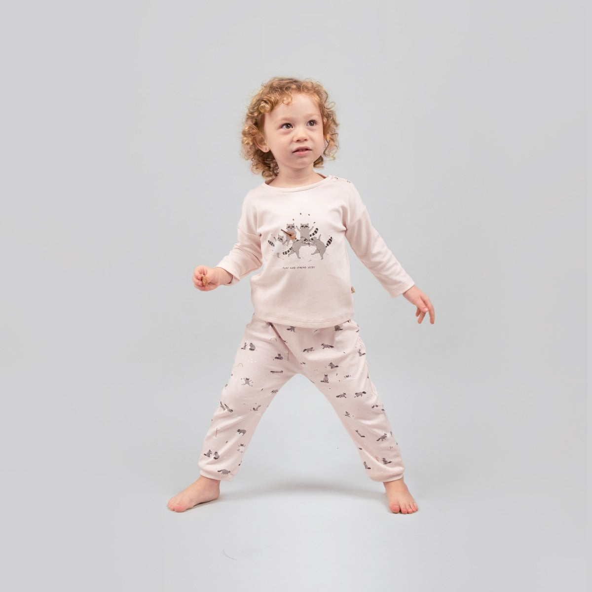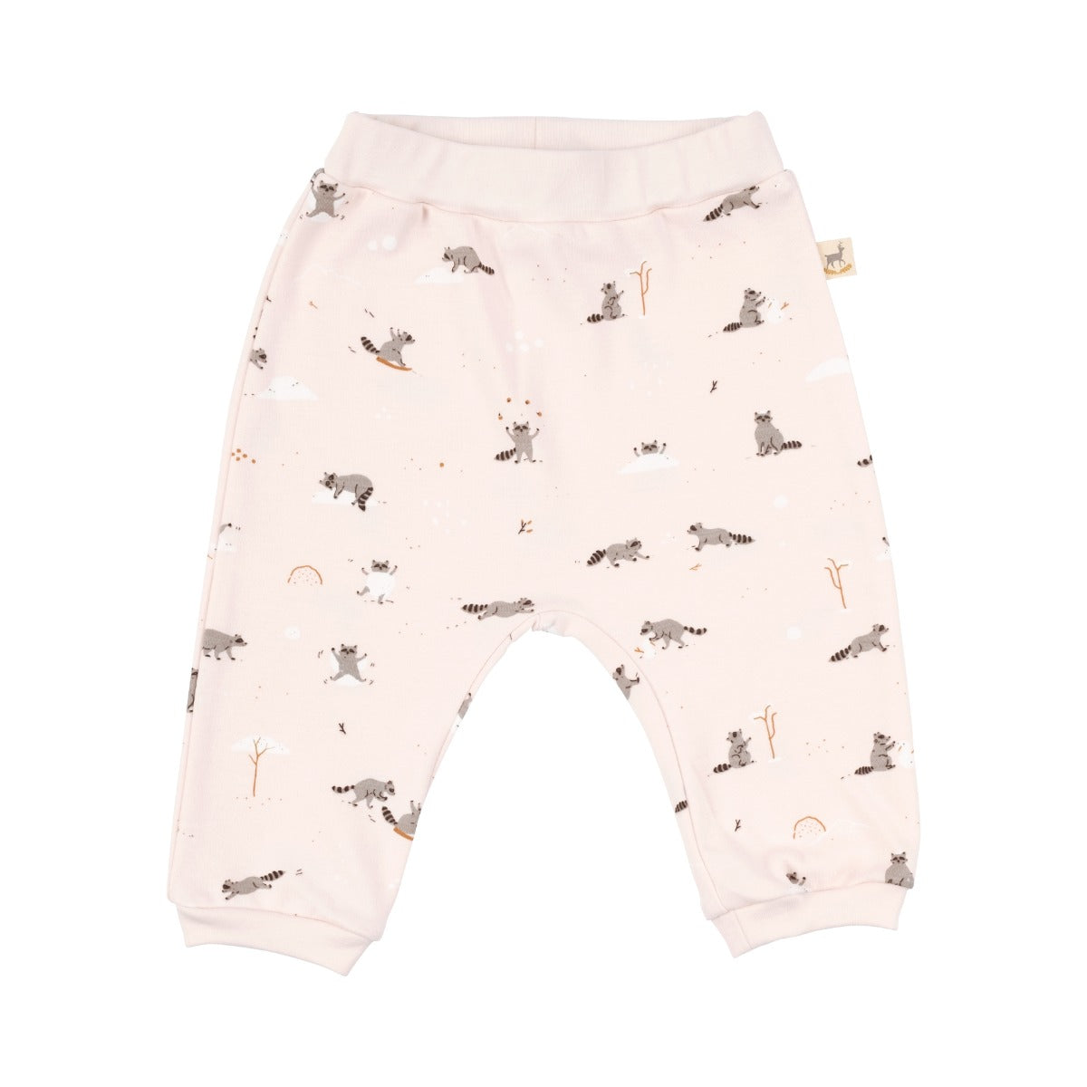 Frolicsome Raccoons Organic Cotton Pants, Pearl