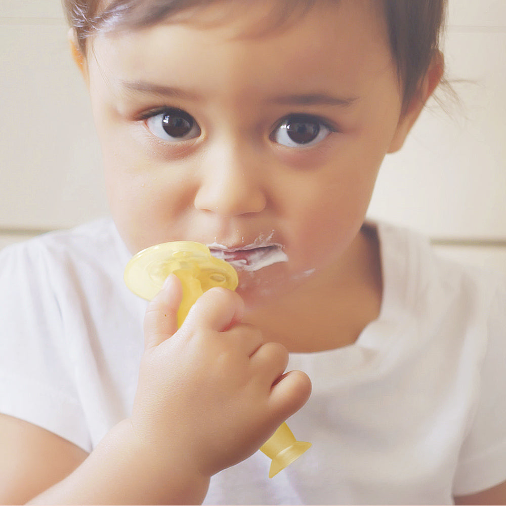 Our 360° Toothbrush is made from 100% soft silicone and is completely safe for babies, massaging and cleaning their delicate new teeth and gums. It also has a suction base to make it easier to store without it tipping over, preventing it from getting germs and other nasties on the bristles. It's the perfect brush for starting your child's dental care and is a great way to encourage them to brush and instill good dental hygiene habits from a young age.