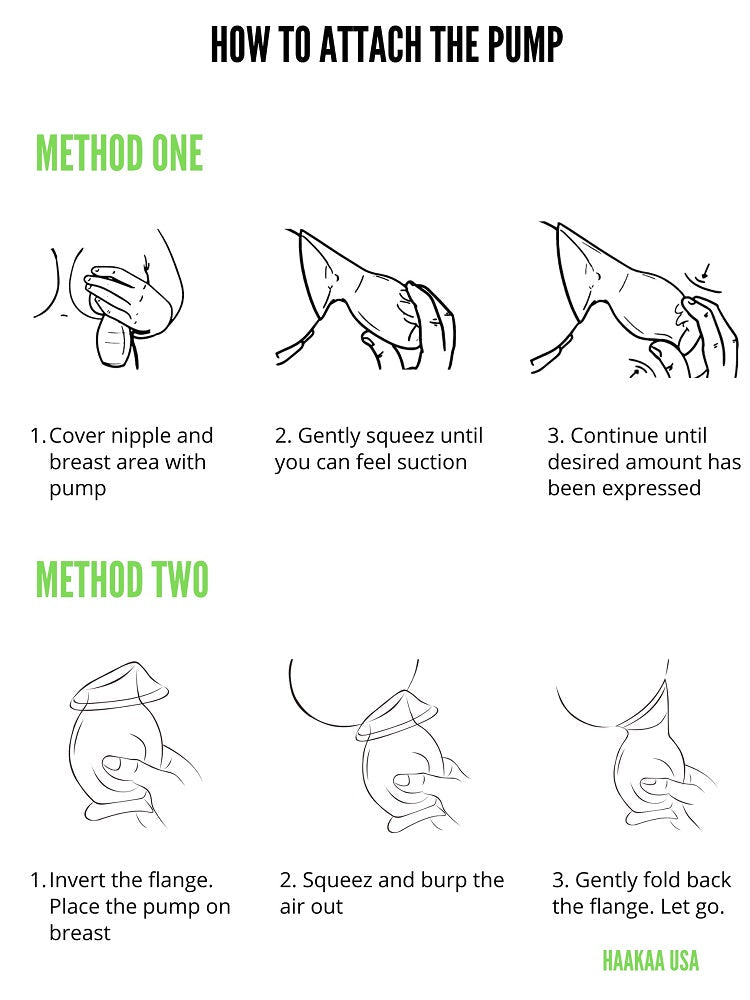 - Apply suction – you may need to adjust the position of your pump a couple of times. Once the pump is secure and comfortable, apply suction by squeezing the base of the pump to start the flow of milk.