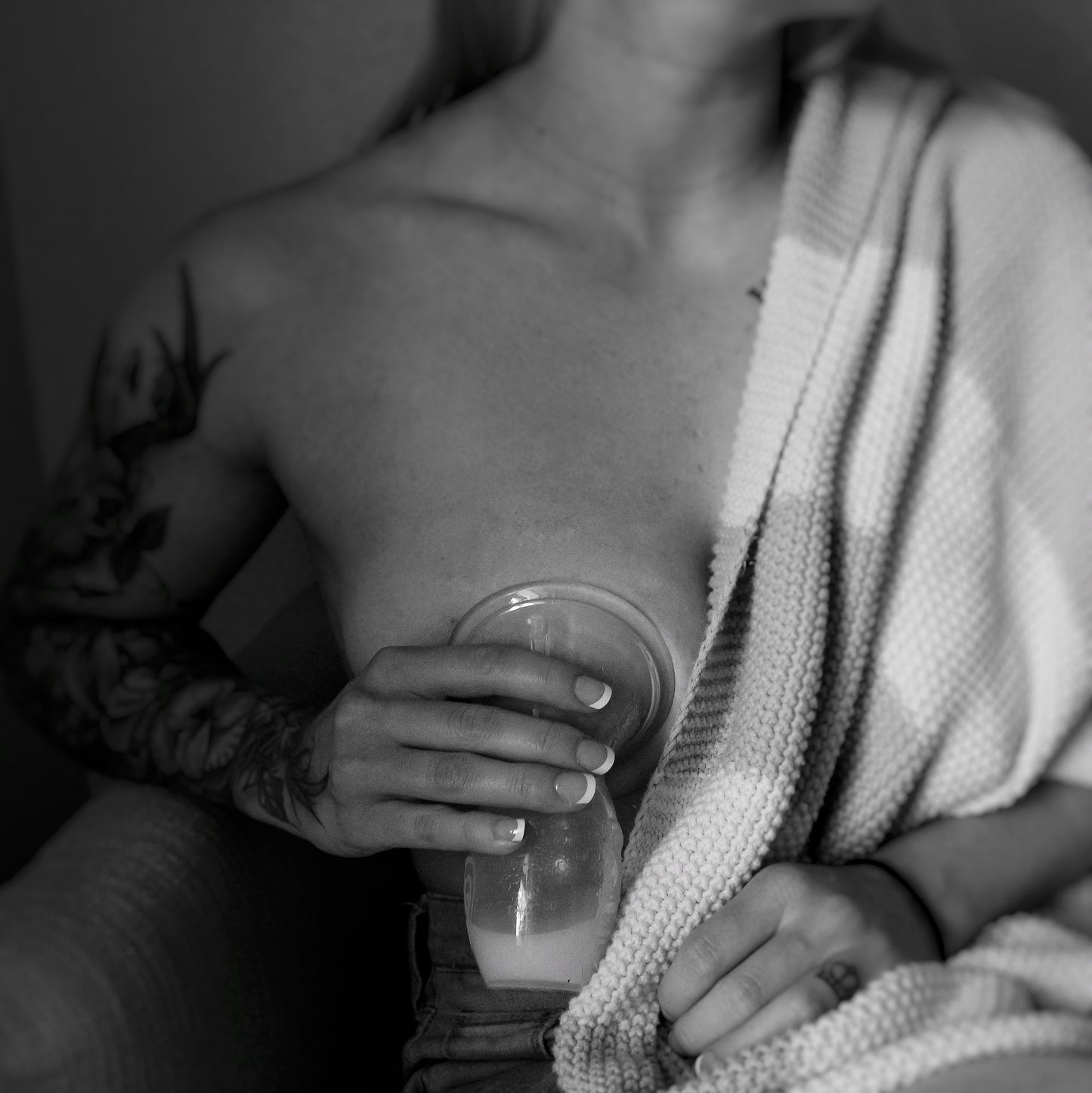 Tips: Encourage let-down by placing a warm flannel on top of your breast and massaging gently. While your child is feeding, attach your Haakaa pump to the other breast to catch precious milk that would otherwise be lost in a nursing pad.
