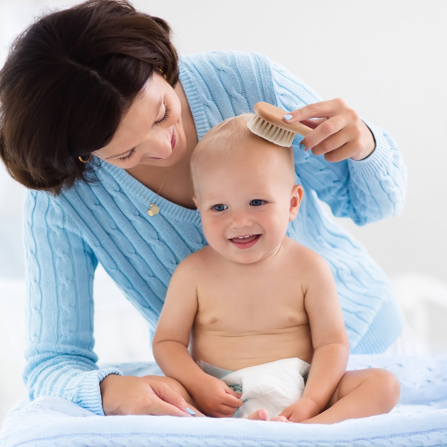 Our natural wood and super soft goat's wool hair brush is the perfect tool for delicate infant hair. Brushing your babies hair has major benefits to their well being and with our eco friendly 100% natural brush you can keep their scalp stimulated while also assisting to prevent cradle cap, generate blood flow and removing dried skin while keeping them relaxed...even helping them drift off to sleep.
