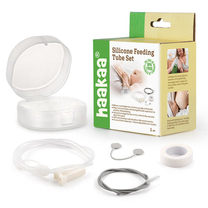 Many moms and their babies experience feeding issues – including latching problems, low milk supply, or maybe little ones that need a little extra nourishment or help to learn how to feed. The Silicone Feeding Tube Set helps you to overcome some of these common issues by connecting a bottle of supplemented milk to your breast via a tube, delivering a constant and controllable flow of milk to baby at the breast. Through the use of the Silicone Feeding Tube, both mother and baby can experience the natural physical sensation of breastfeeding, while encouraging mom’s supply and ensuring that baby receives adequate nutrition.