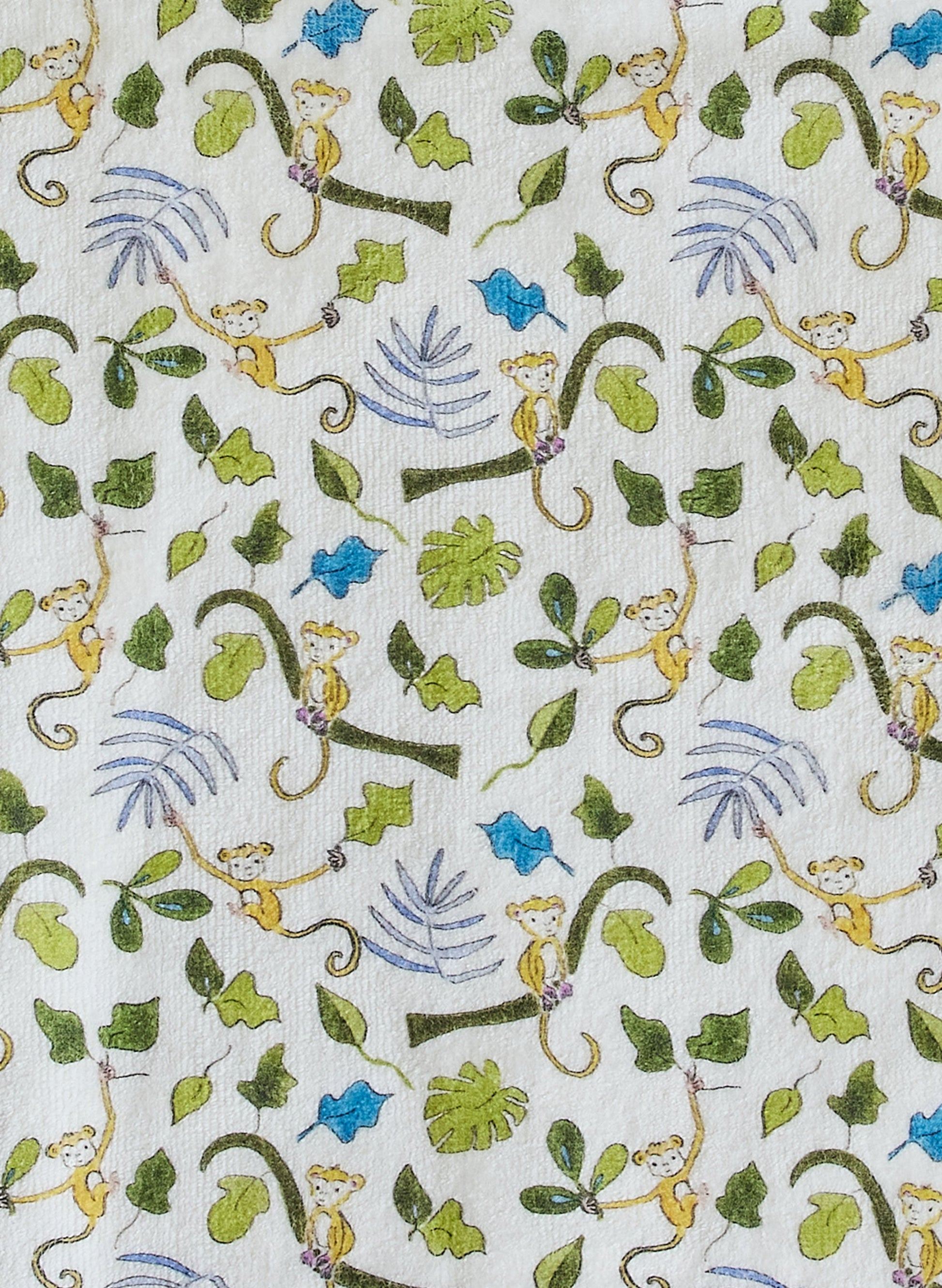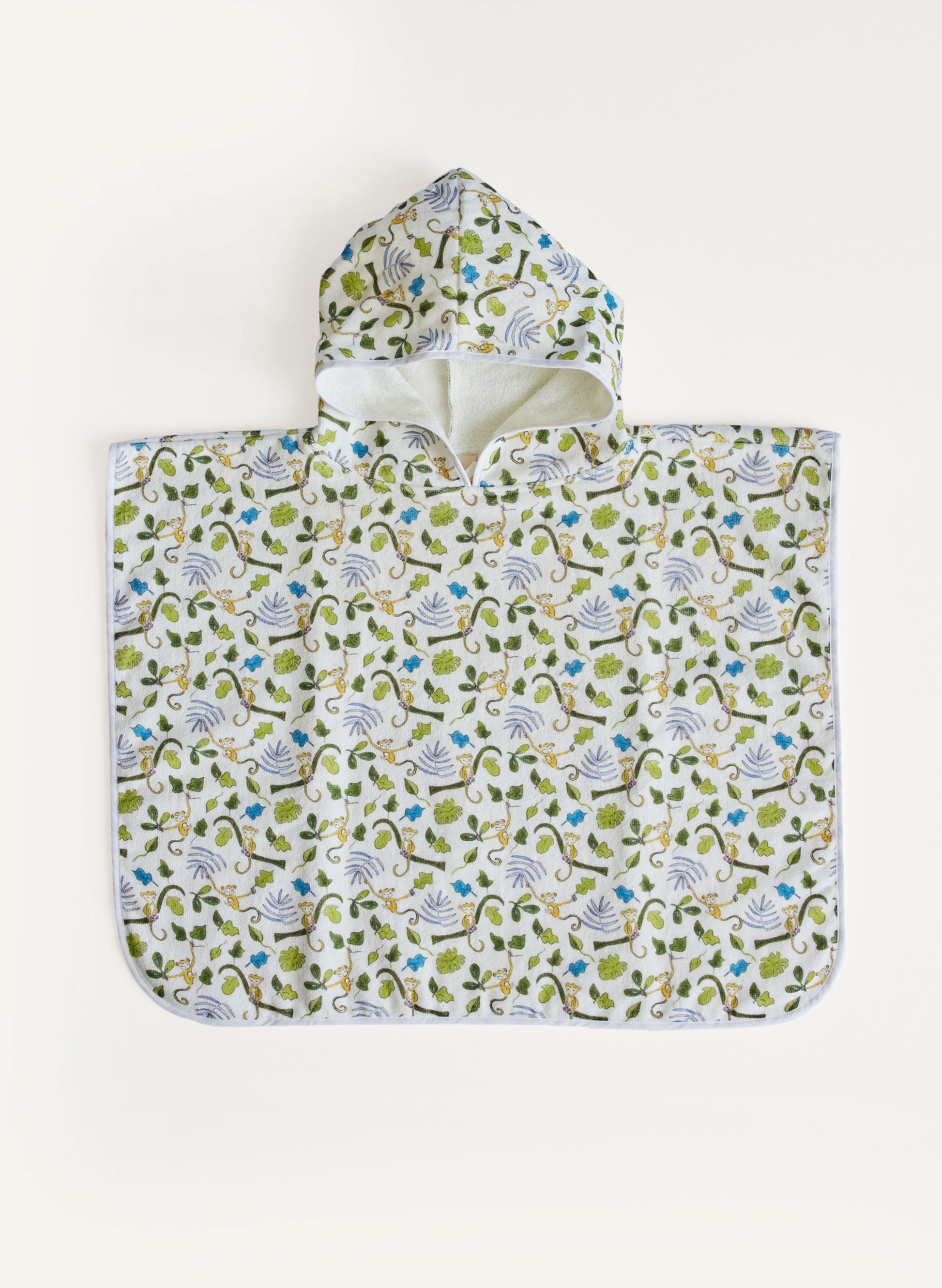 - Printed cotton terry poncho with cornflower blue bias trim.
