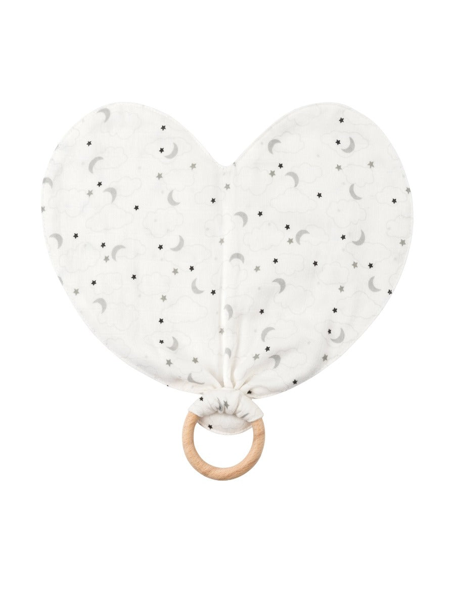 Heart Lovey with Teething Ring, Grey Muslin Starry Night