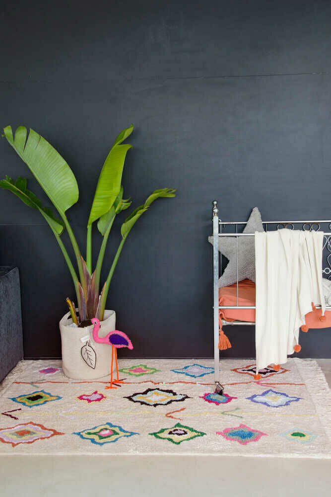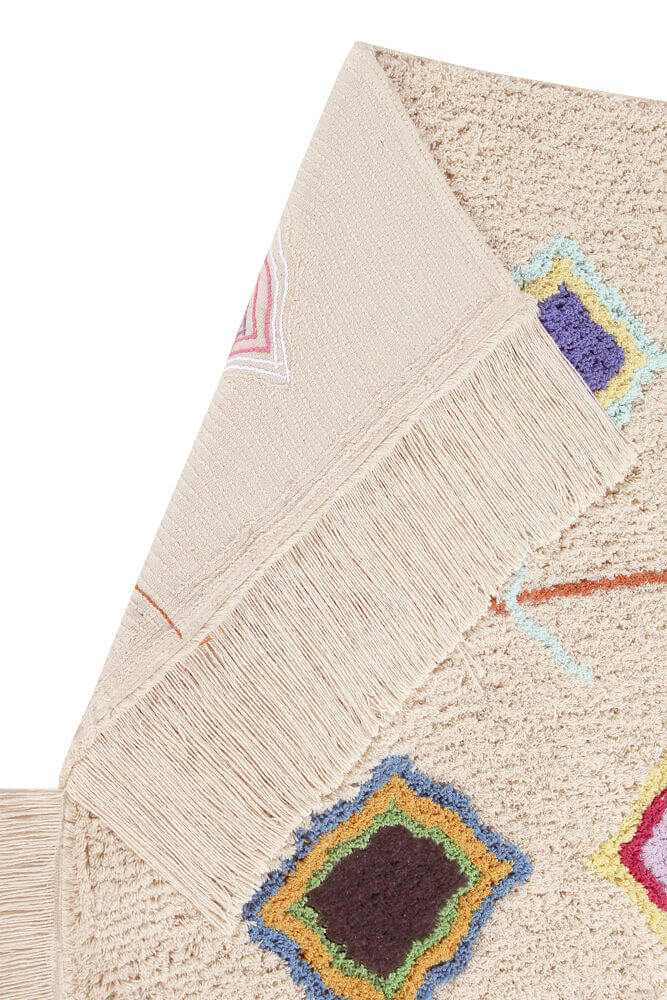 The colors of this rug are inspired by Carol's favorites, the youngest daughter of Lorena Canals. A versatile piece with a bohemian vibe that elegantly combines up to 18 different colors, and a favorite in Lorena Canals kids catalog.