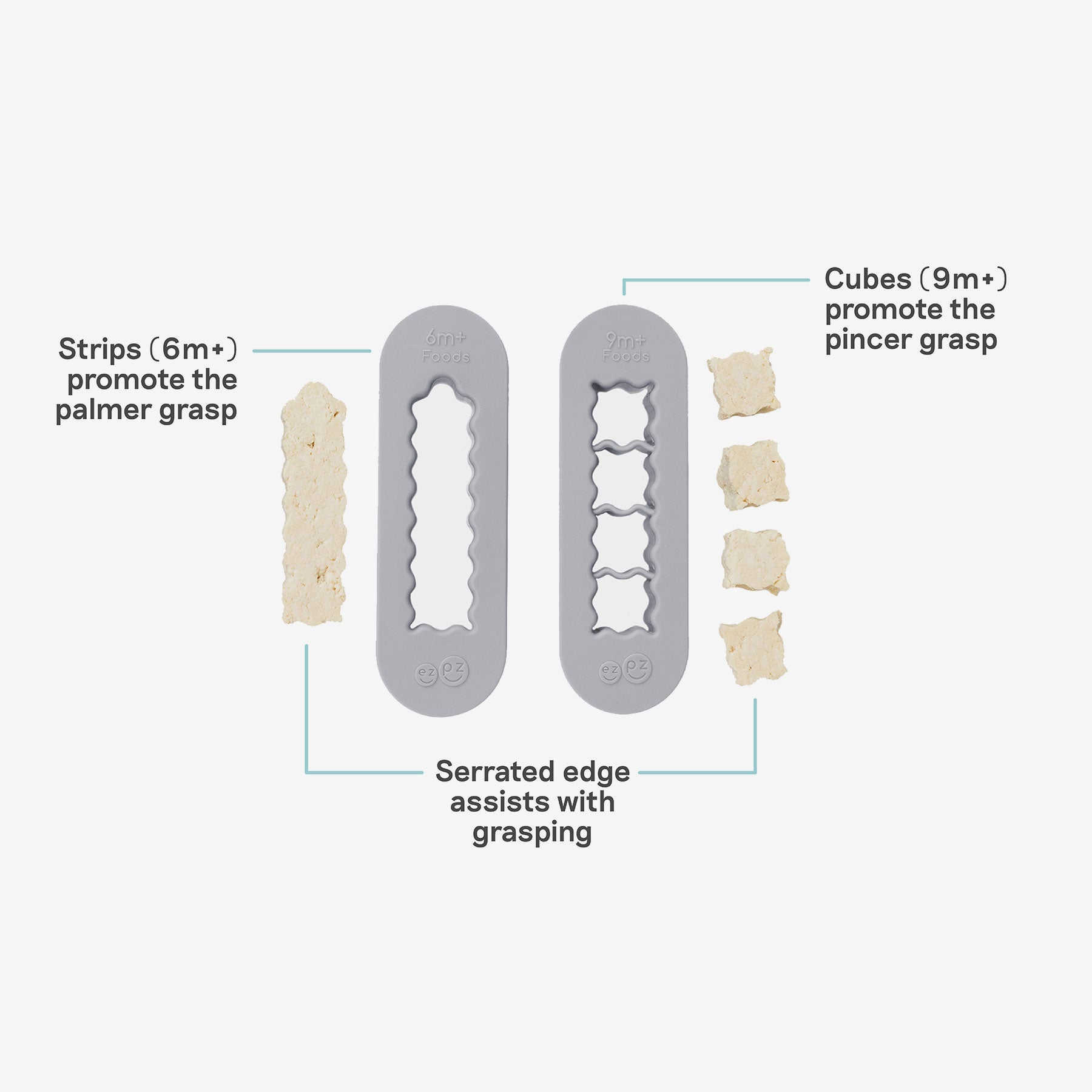 These tools support the foundational oral-motor and fine motor skills your baby needs for successful eating and drinking. Parents can follow the included pamphlet and QR code for clear guidance on how to use each tool for their baby’s age and stage.