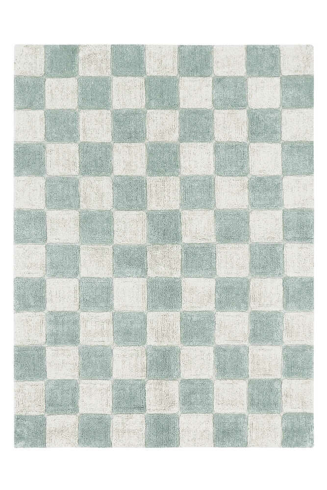 Inspired by vintage ceramic floors, the Kitchen Tiles rug features a checkered pattern playing with contrasting natural and dark grey colors. The rug used our RugCycled mix / Natural canvas base, leaving the base slightly visible in between the colored squares simulating the kitchen tiles.