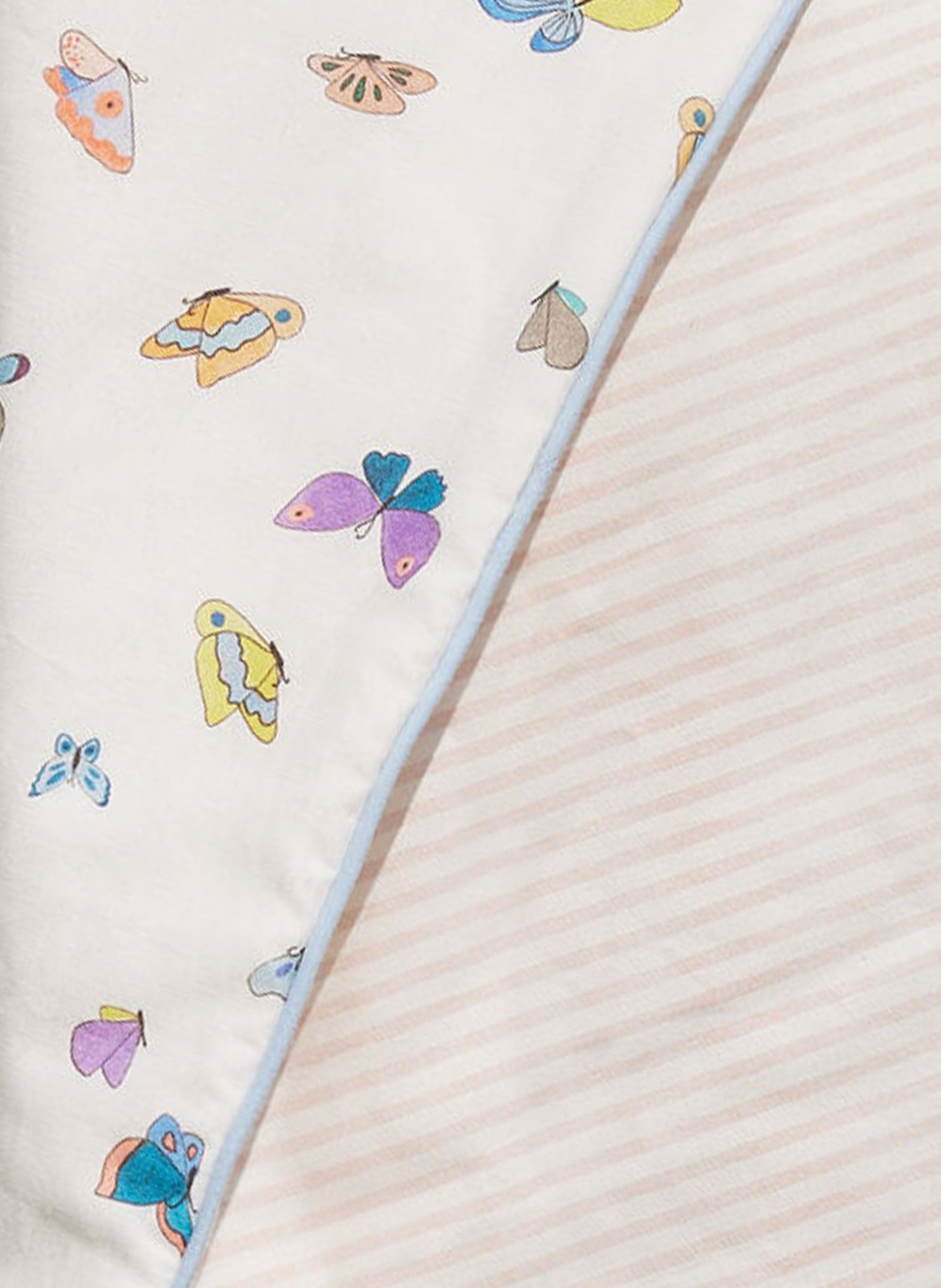 Dreamy prints meet soft, cooling fabric. We spent over six months testing fabrics to find the softest and silkiest bedding fabric that is also eco-friendly and free of harmful chemicals. Our reversible crib quilt is silky soft, lightweight and breathable, making it appropriate for any time of the year. It is also designed to fit any standard size crib and toddler bed, as our intention with our entire collection is to offer "fewer, better" products that are timeless when it comes to both design and functionality.