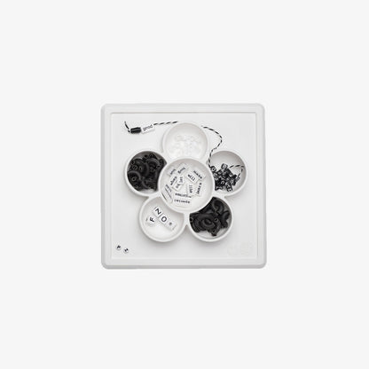 The Mini Play Mat is an all-in-one mat + flower compartments that assists with painting and other crafts (+ food play like cookie decorating). It suctions directly to any flat surface, keeping craft time and snack time tidy.