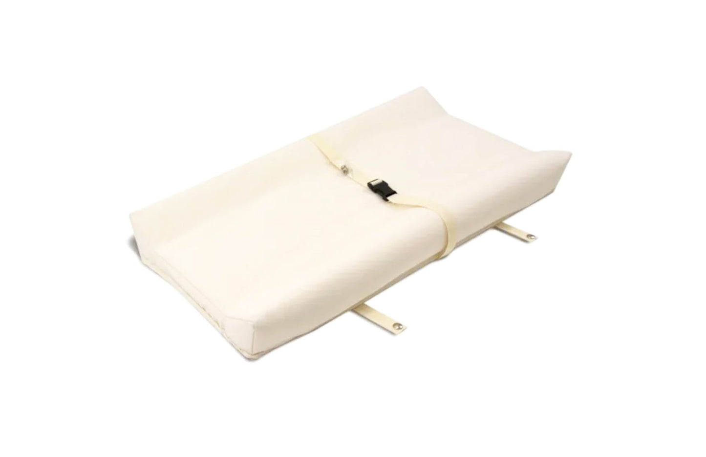 Keep baby snug and secure during changing time with Naturepedic’s Certified Organic Changing Pad! Featuring soft organic cotton fabric with a clear, food-grade waterproof coating made from non-GMO sugarcane, the pad is comfy for Baby and easy to clean. It’s made without common allergens like latex and wool, and the contoured polyethylene core is wrapped in GOTS certified organic cotton for extra comfort. The safety buckle helps to secure Baby in place and snap screws are included to secure the pad to a dresser while at home. If you choose to add on the cover for extra comfort, rest assured that the cotton flannel fabric it is made from is GOTS certified organic cotton as well.