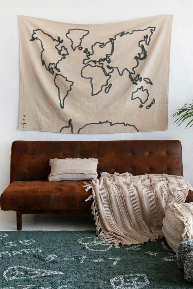 In Lorena Canals' world, everything turns into textiles! Such as this mural map, a new take on a kids' room classic in cotton canvas. Customize it by using it as a pinboard to keep notes of your travels around the globe. You may also repurpose it as a floor mat, bedspread, picnic cloth, or you name it!
