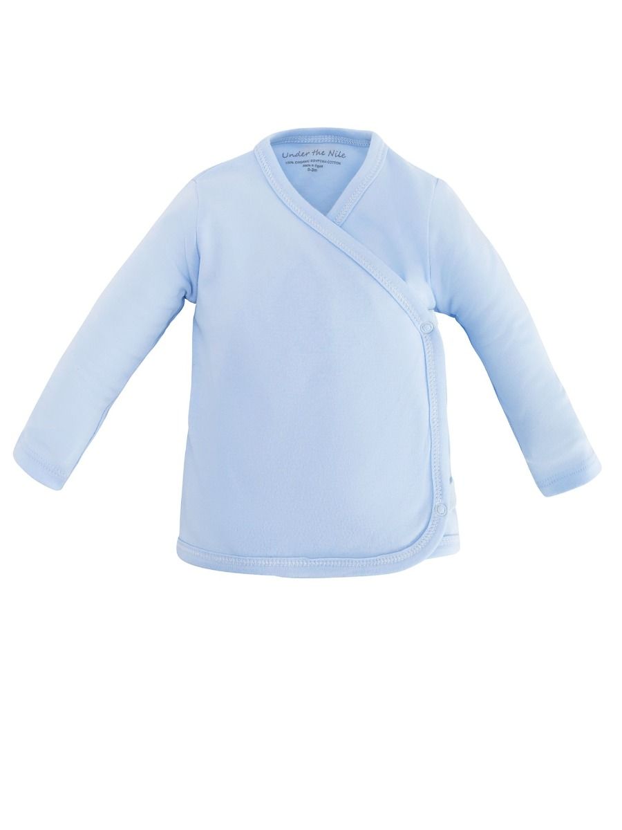 This basic solid pale blue baby Long Sleeve T-shirt is made for layering, and is a basic essential for every newborn baby. It features side snaps that open wide for easy changes and for a fuss free comfortable fit. It's also designed with a double-breasted fit to make sure it stays put. Crafted in renowned butter soft organic Egyptian combed cotton that is gentle on baby's skin and the environment. This is a timeless baby basic that can be mixed and match with any outfit.
