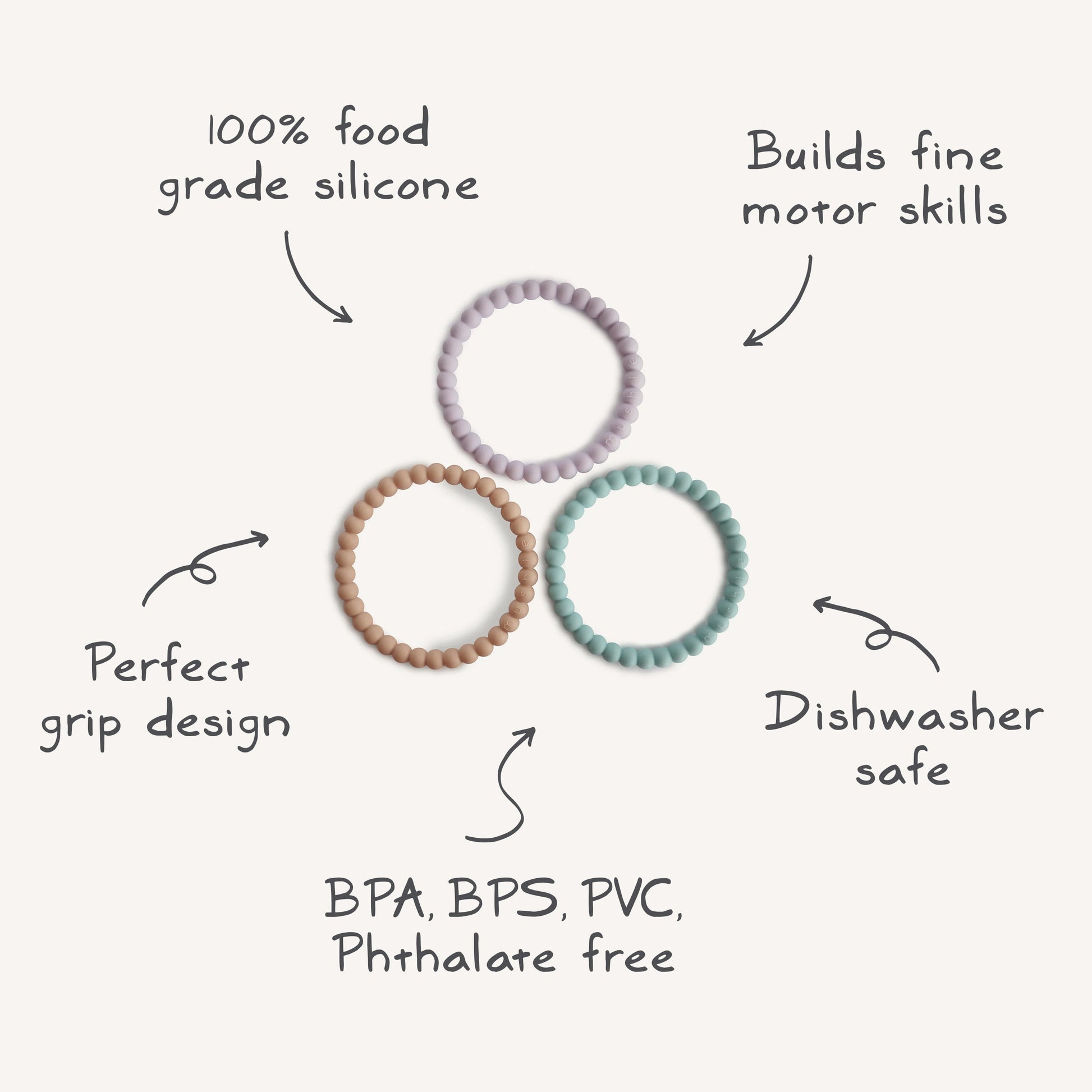 An accessory for you, but a self-soother for your baby, help soothe irritated gums with pearl bracelet teethers. Made from 100% non-toxic, food-grade silicone, and designed to be easy to grasp by tiny fingers, our teethers are safe for a baby to use. Their sophisticated colors and playful design make them a stylish addition to your home.