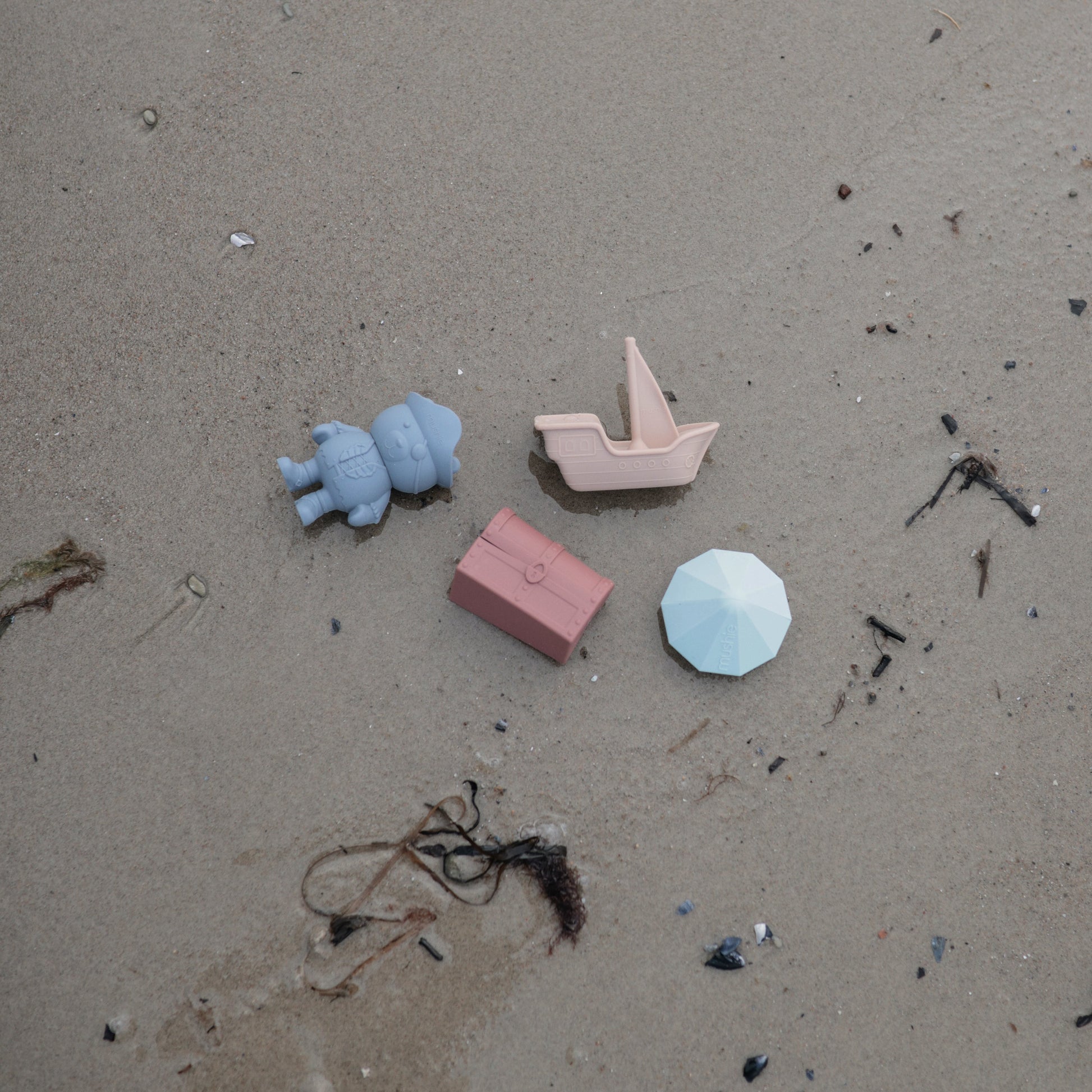 Make a splash at bathtime with the pirate bath play set that includes a charming pirate bear with a treasure chest, ship, and jewel. Made from non-toxic silicone, the soft material is easy for little hands to hold while wet or dry. Its inventive design allows each toy to open into two separate pieces for thorough cleaning and fast drying. This feature allows the toys to remain mold-free with its easy-to-clean pieces.