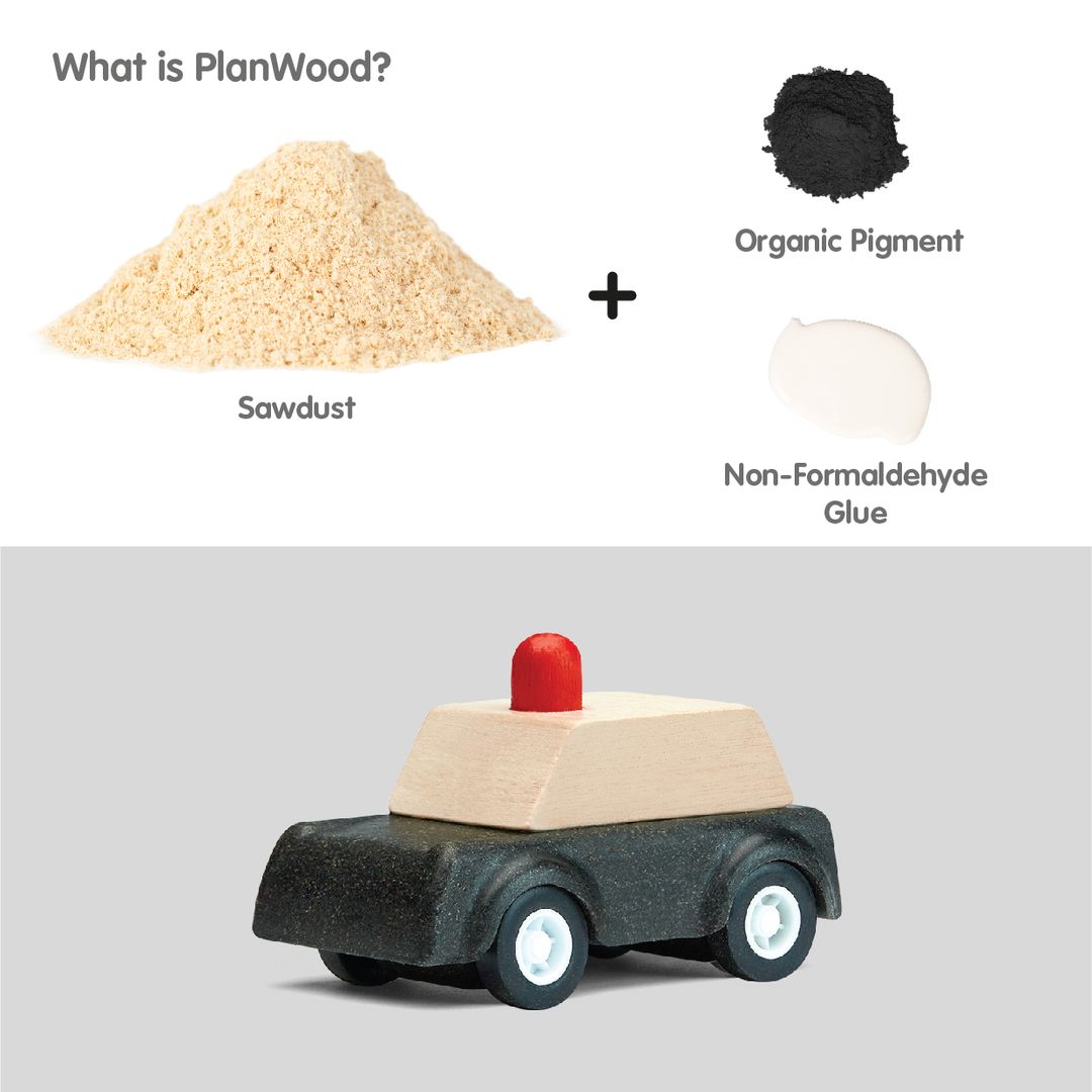 Keep your city and citizens safe by staying alert and ready to fight crime in the PlanToys Police Car. Expand your imagination in new ways and explore your problem-solving skills through pretend play! Designed using a unique combination of solid wood and PlanWood, the vehicle stimulates a child's imagination, and helps them develop their fine motor skills and hand-eye coordination.