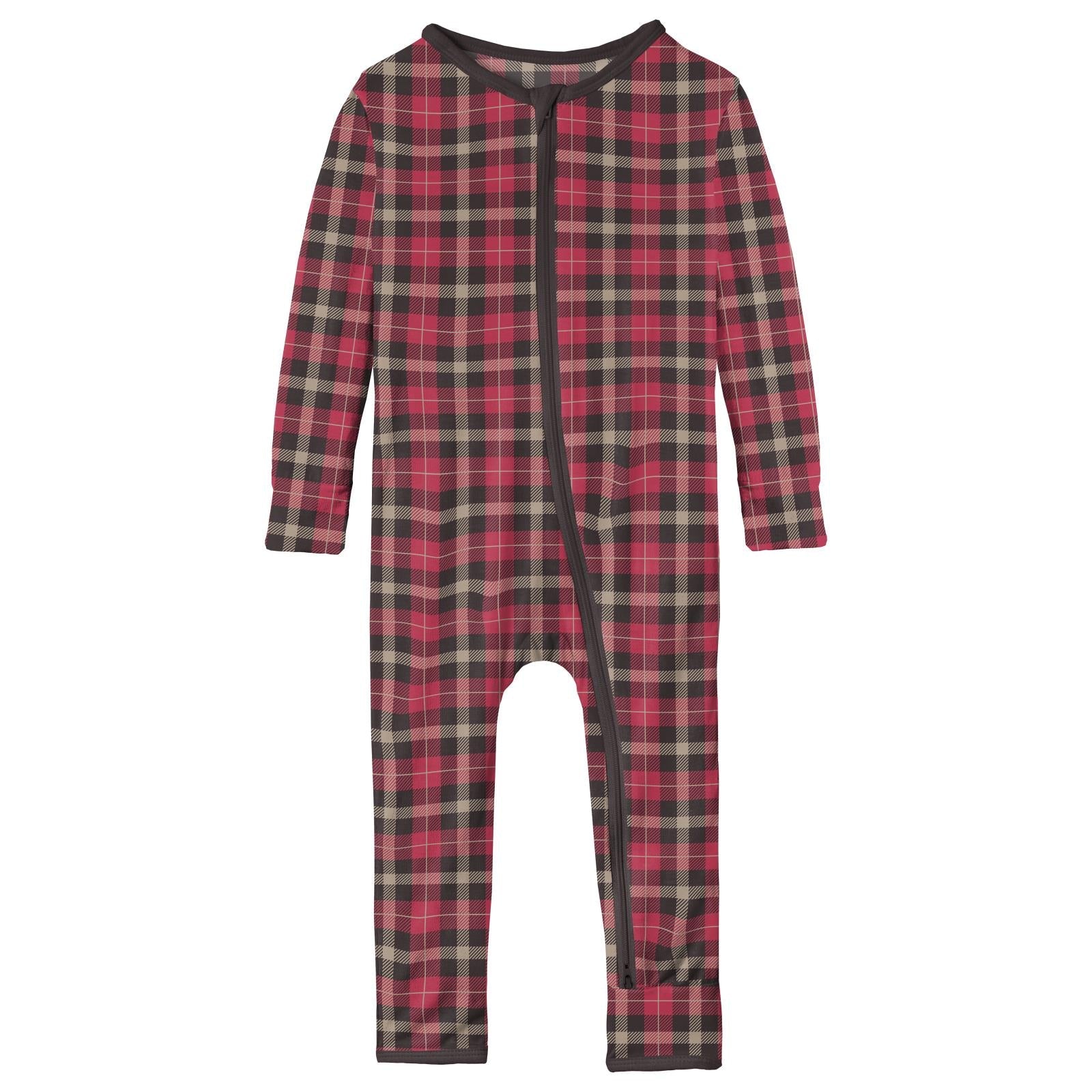 Print Coverall with 2 Way Zipper in 90's Plaid