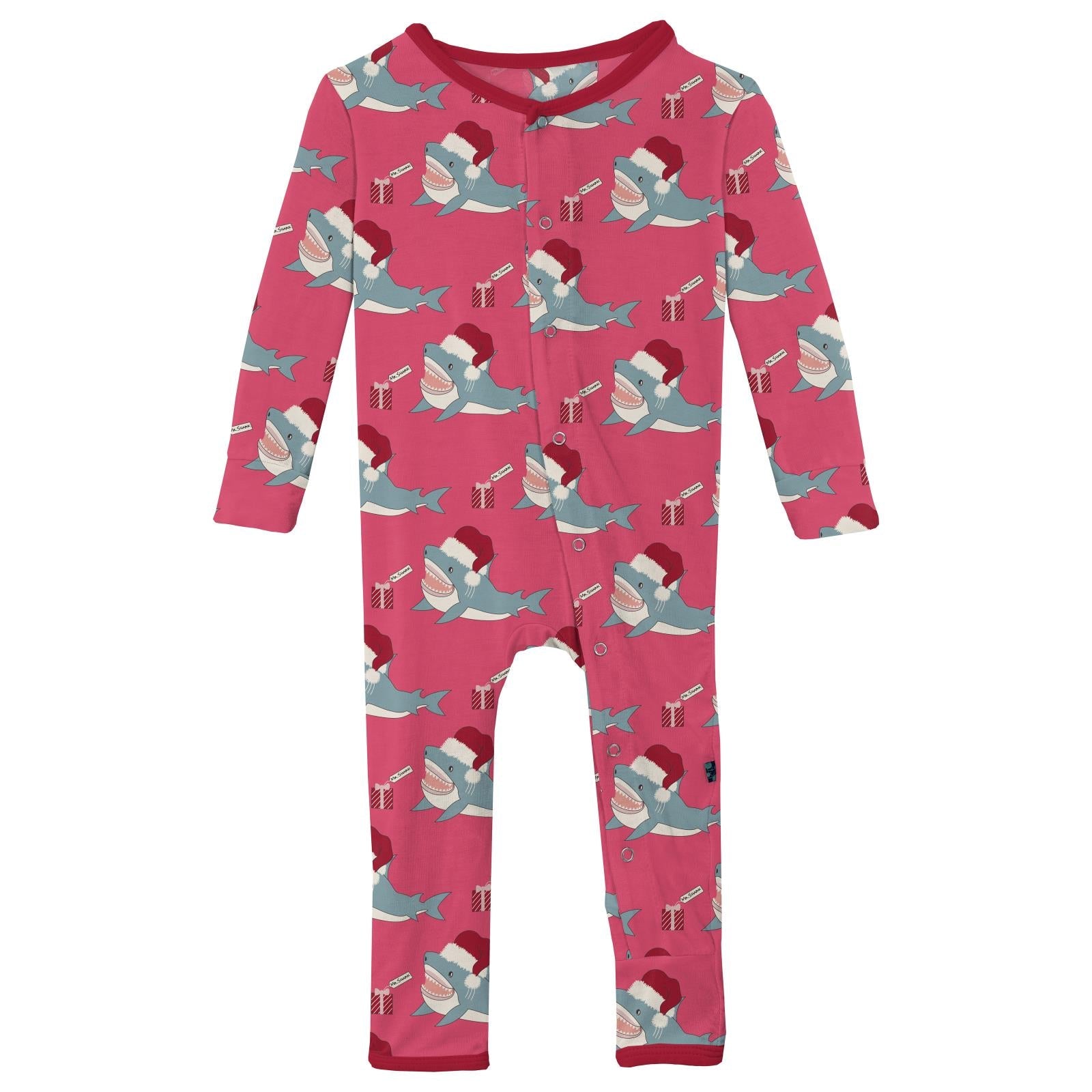 Print Coverall with Snaps in Winter Rose Holiday Sharks