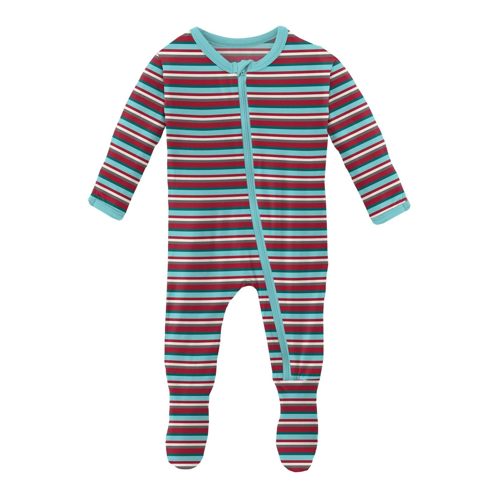 Print Footie with Zipper in Christmas Stripe