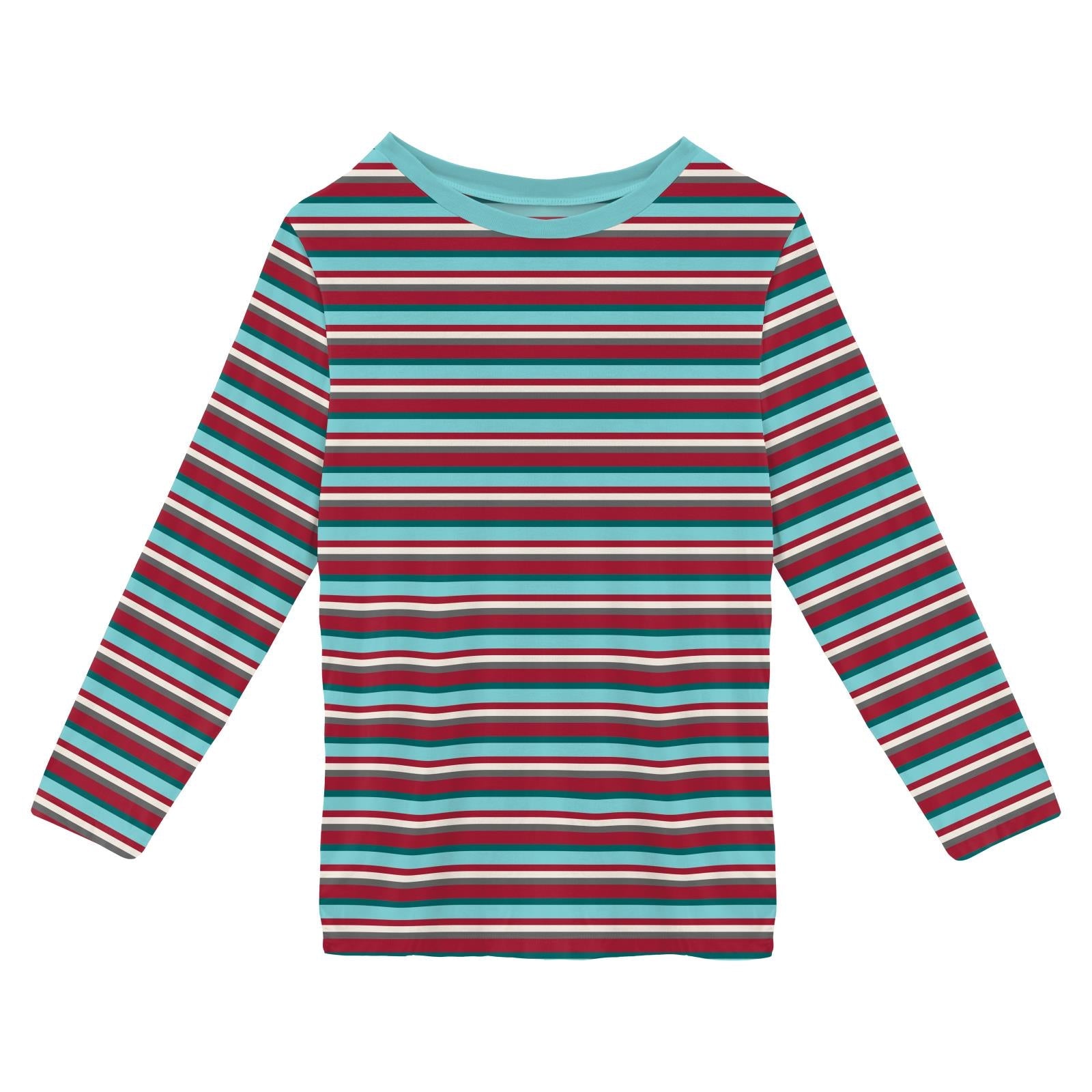 Print Long Sleeve Crew Neck Tee in Christmas Stripe
