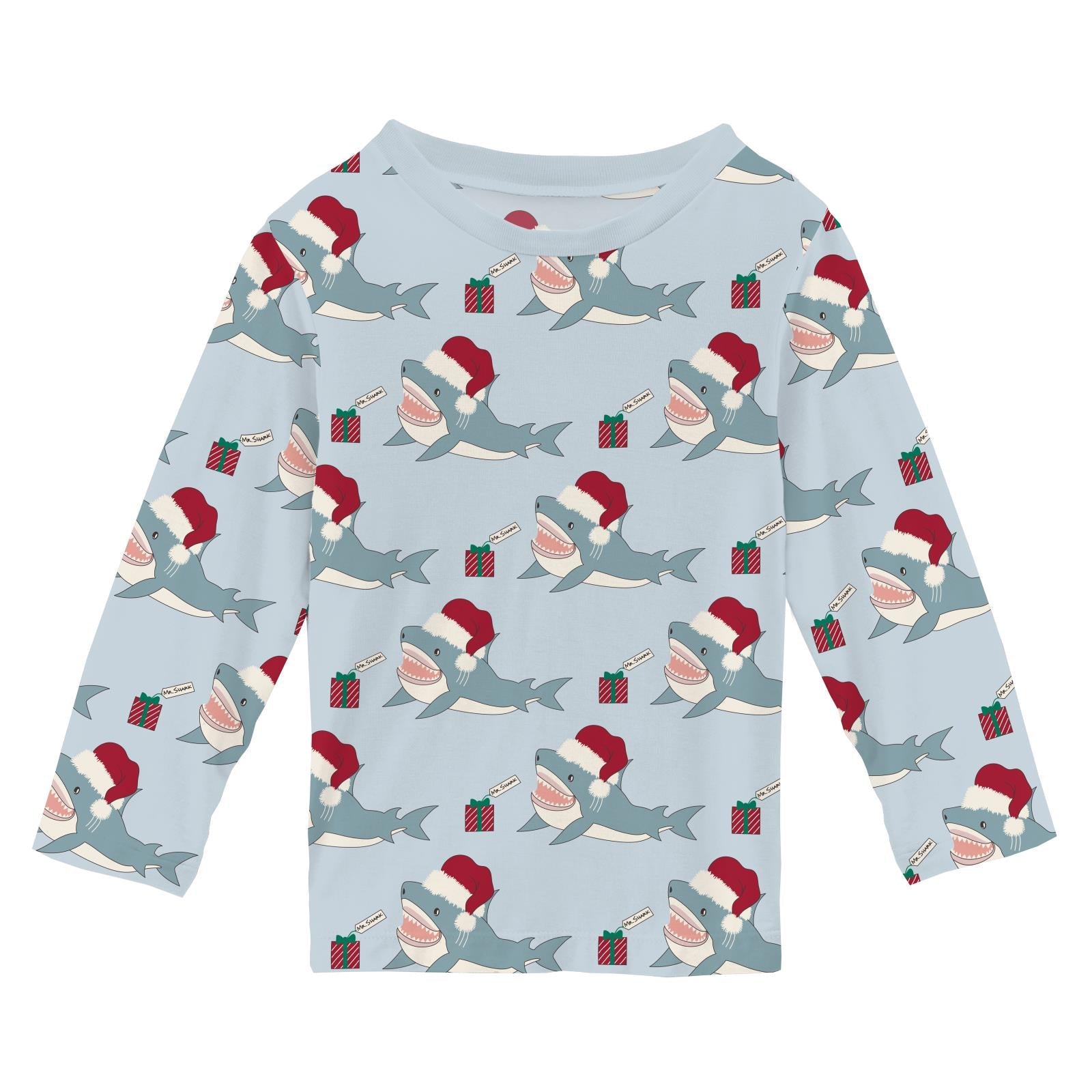 Print Long Sleeve Crew Neck Tee in Illusion Blue Holiday Sharks