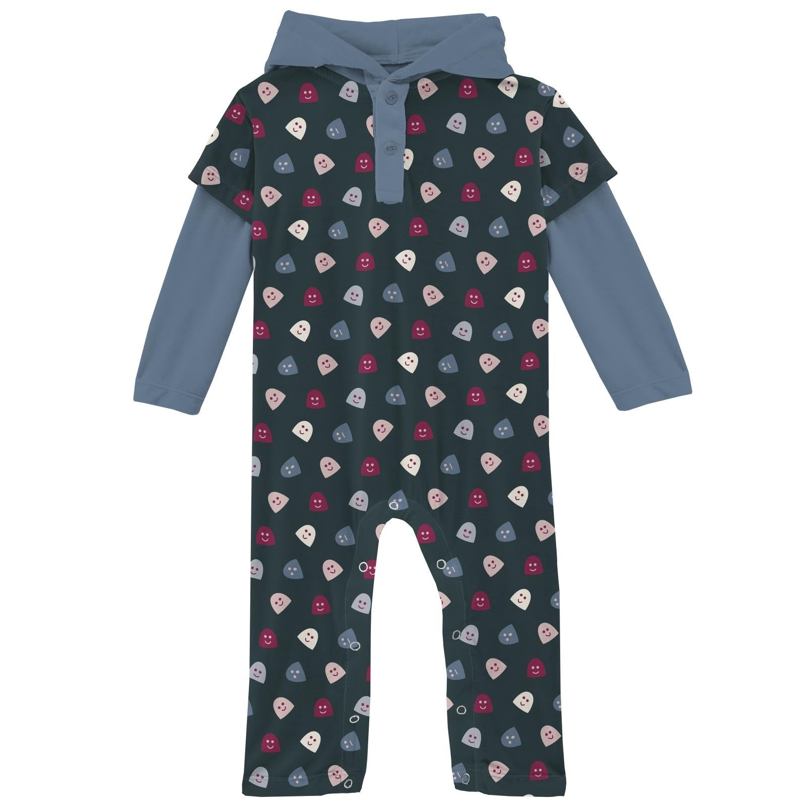 Print Long Sleeve Hoodie Romper in Pine Happy Gumdrops