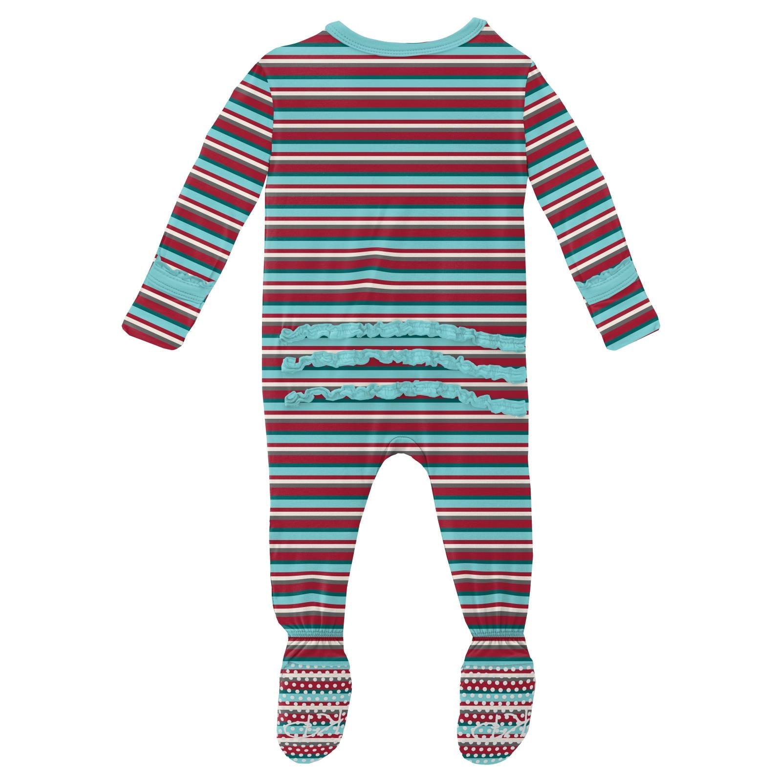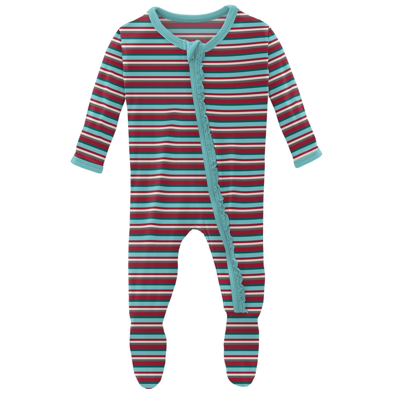 Print Muffin Ruffle Footie with Zipper in Christmas Stripe