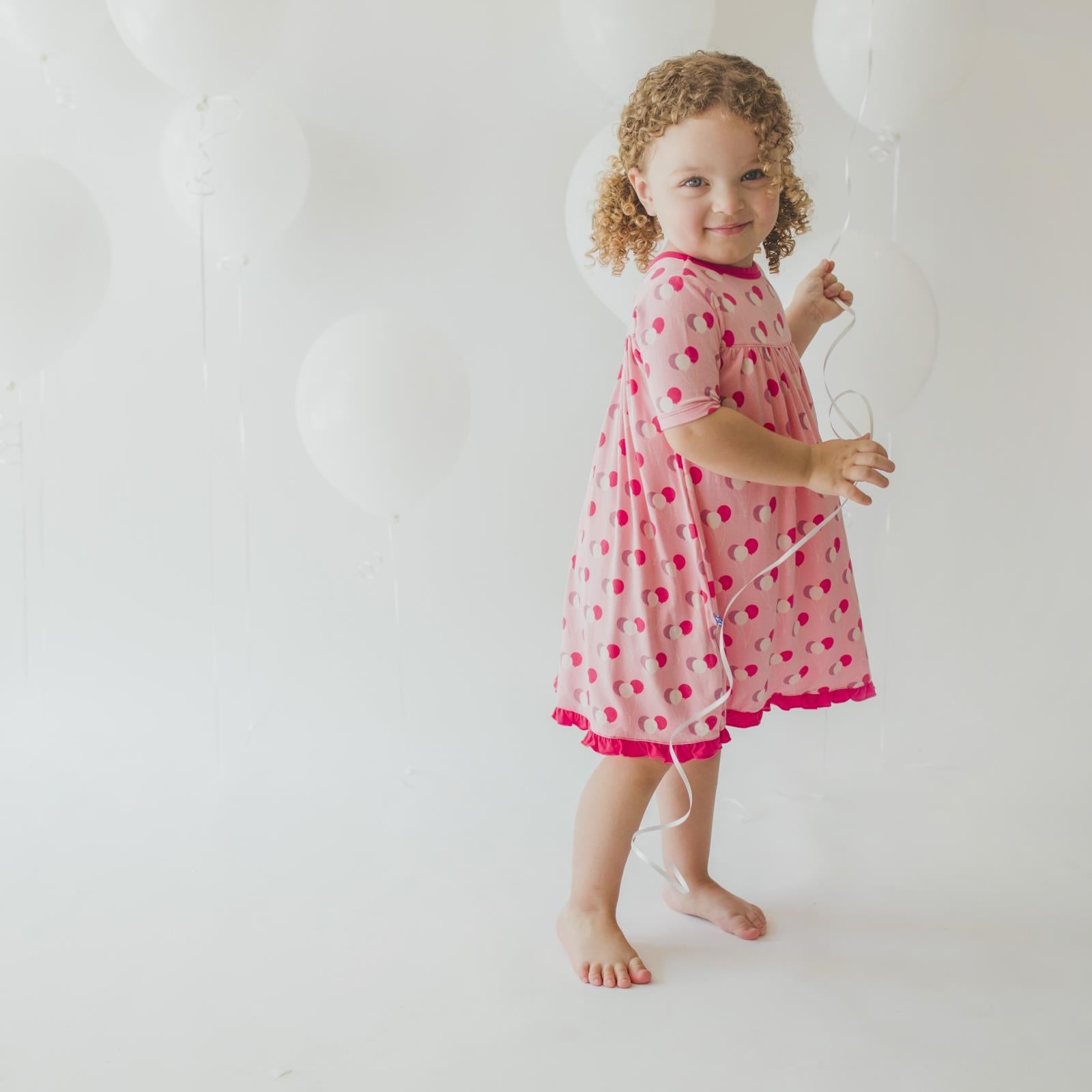 Our Short Sleeve Swing Dress is a warm-weather essential with its high empire waist, flouncy skirt, and ruffle hem that adds just the right touch of charm. Made from our signature buttery-soft fabric, it's breathable, stretchy, and oh-so-comfy for every adventure under the sun. Easy to throw on, easy to love—perfect on its own or paired with our Ruffle Short or leggings for extra cuteness.